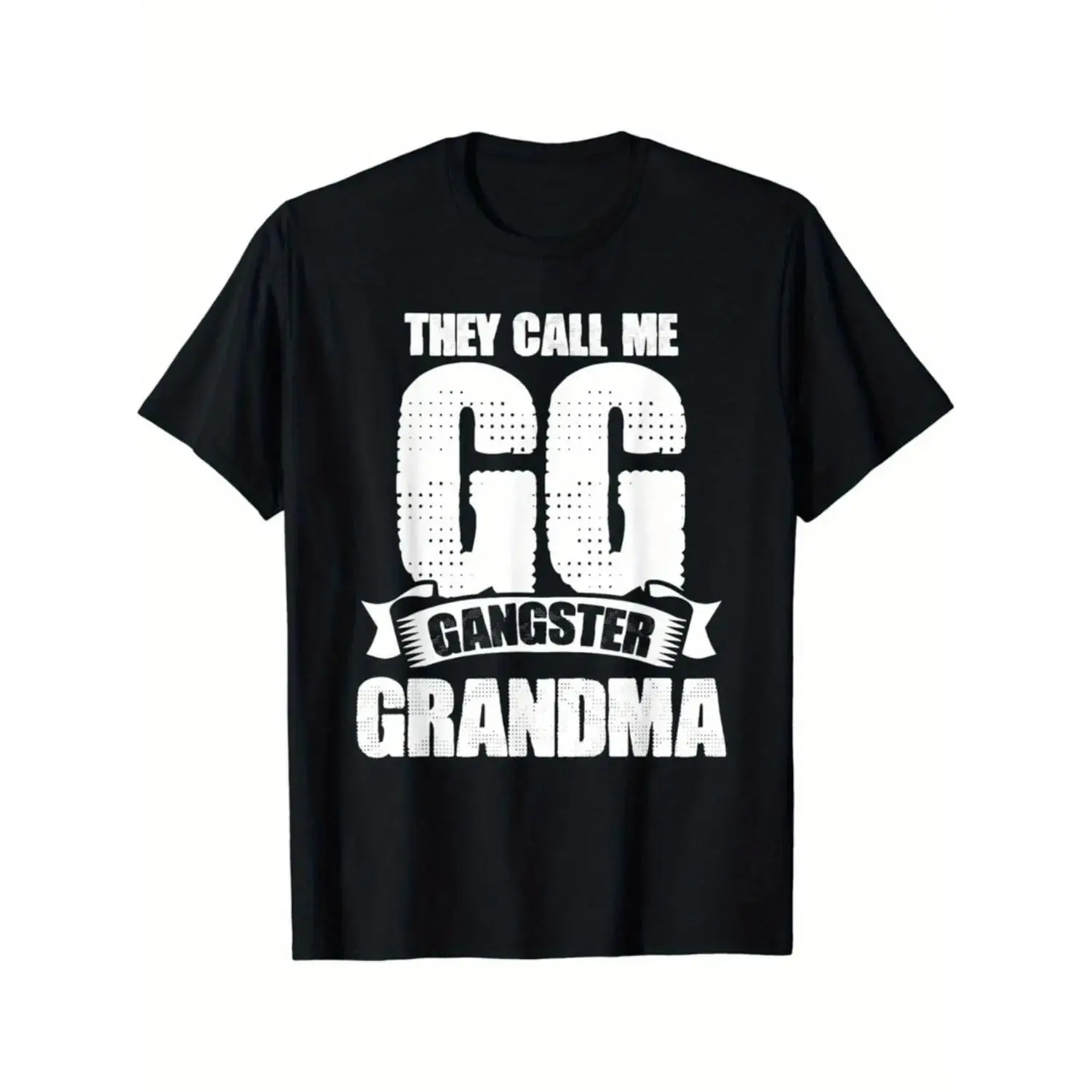 Title: 1pc Black Cotton "They Call Me GG Gangster Grandma" Graphic T-Shirt