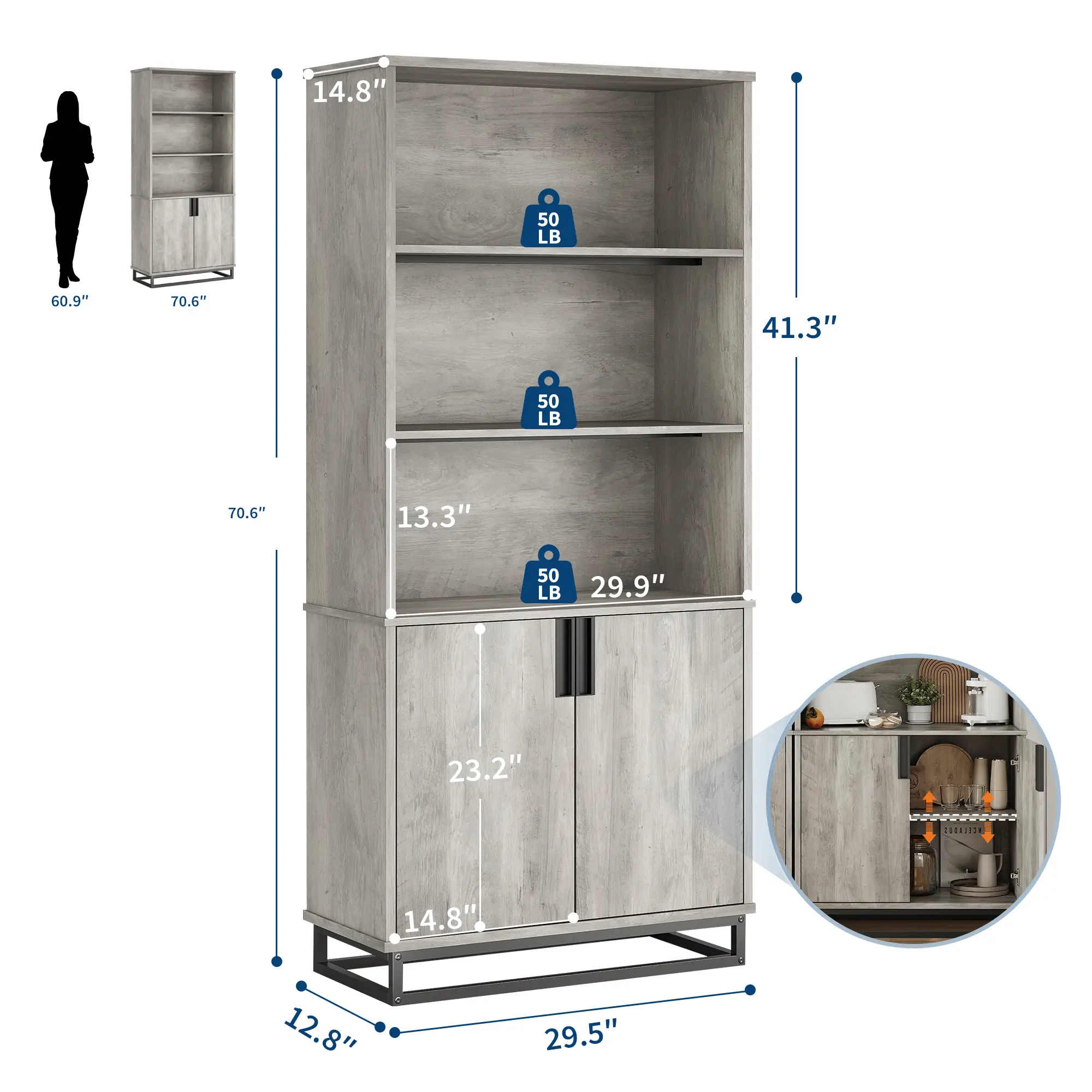·Versatile Placement: The elegant gray finish complements any décor, making it ideal for living rooms, offices, or kitchens.