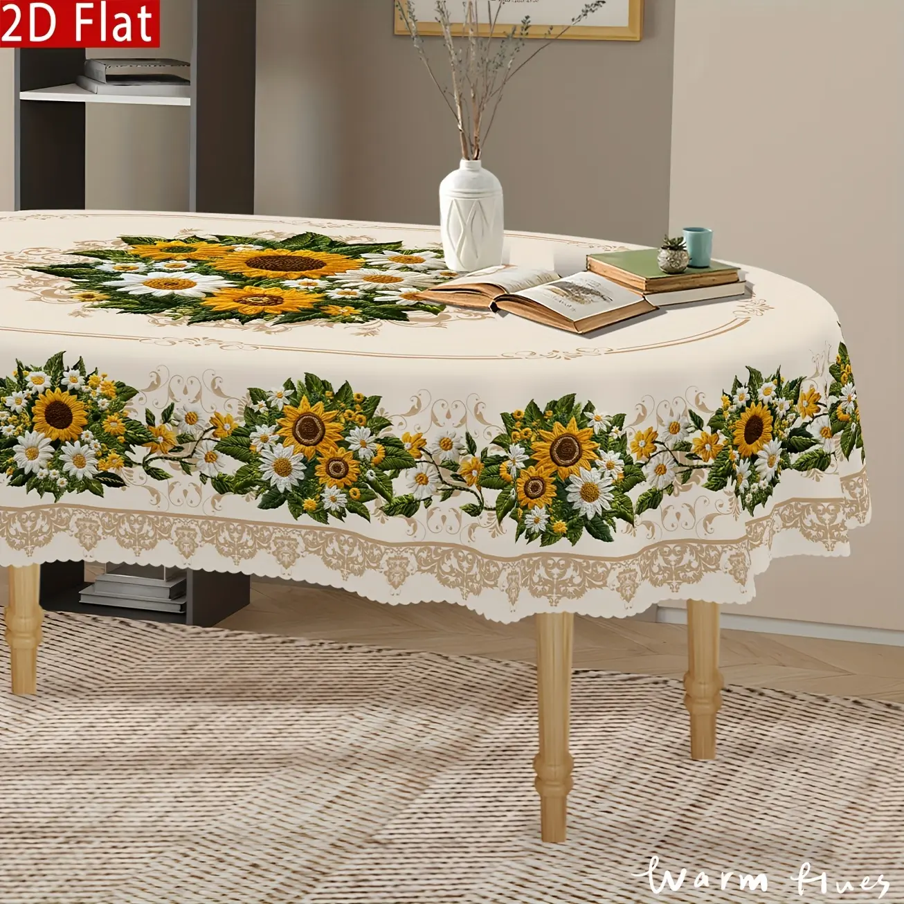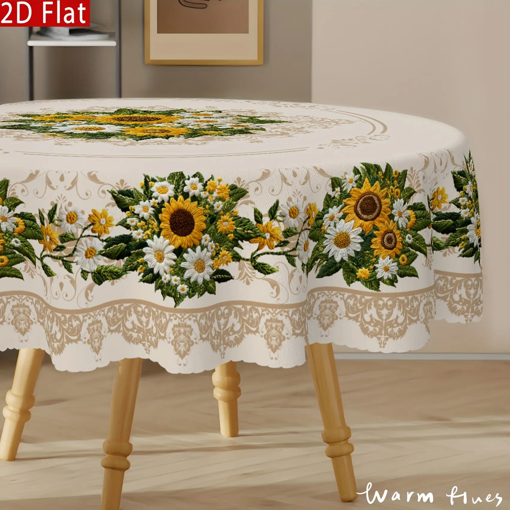 1pc Vintage Sunflower & Daisy Tablecloth - Non-Embroidered European Floral Design, Durable Polyester Rectangular Table Cover for Round/Oval Tables, Kitchen Dining Room Patio Picnic Decor, Easy-Clean Vintage Home Decor, Machinemade Textile, Sunflower Kitch