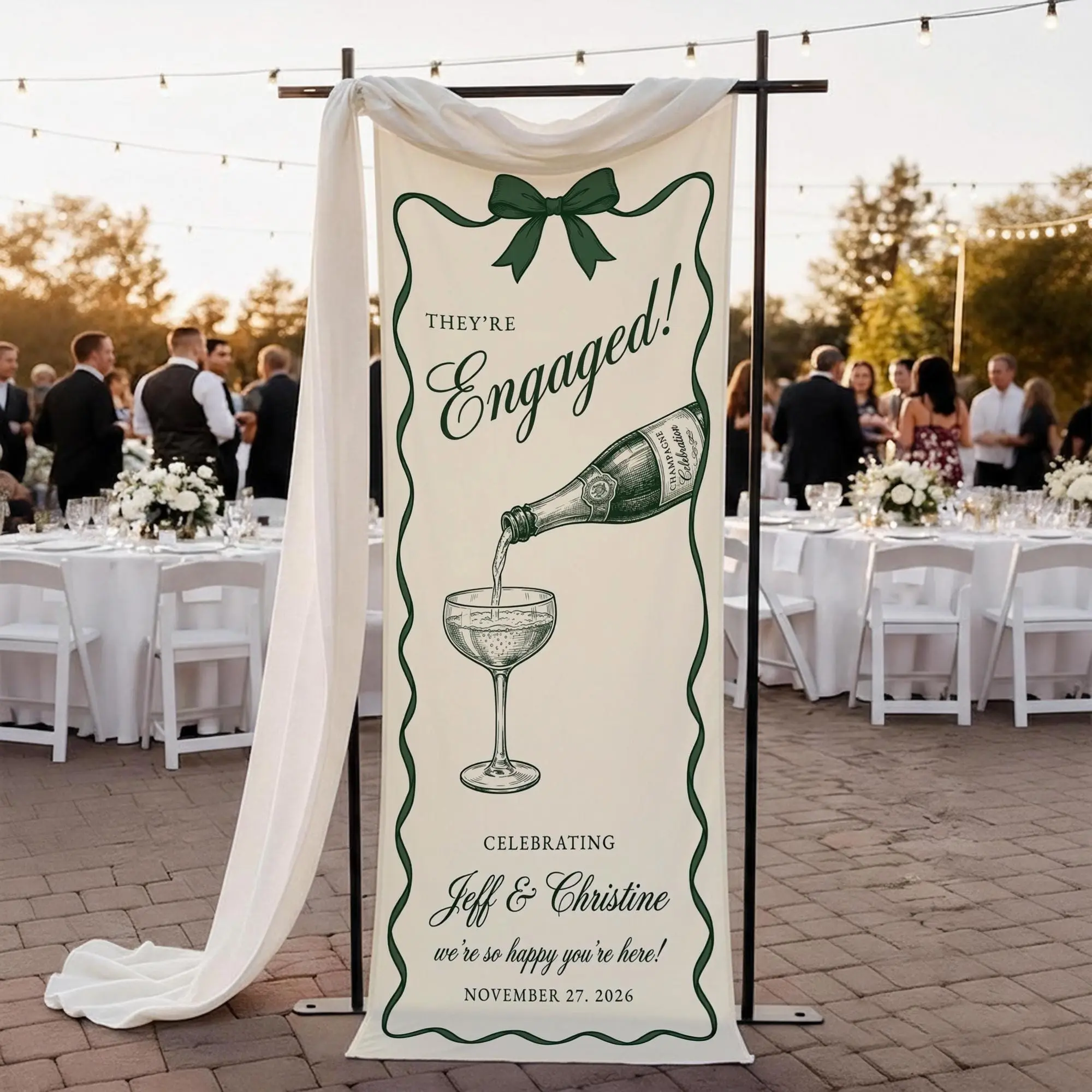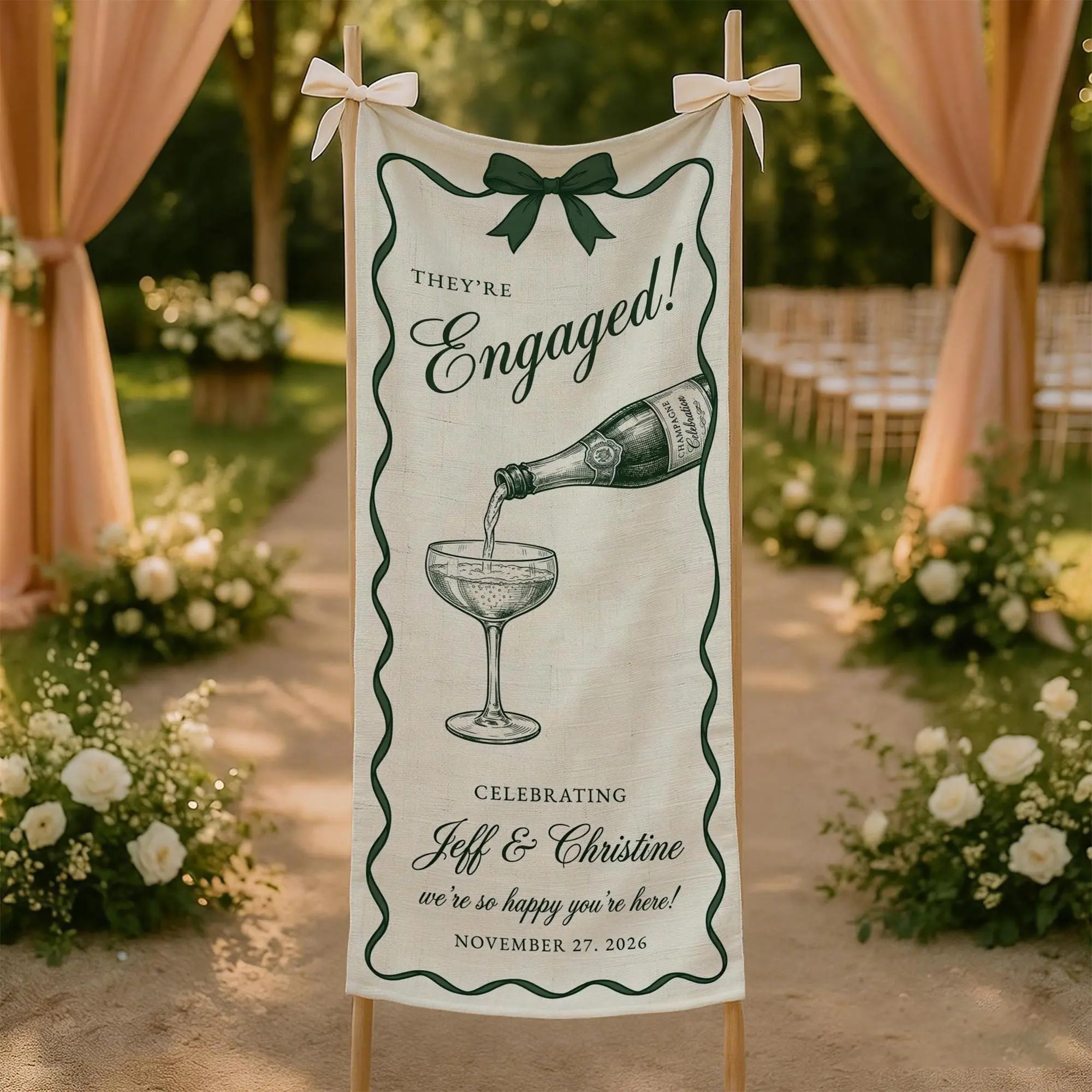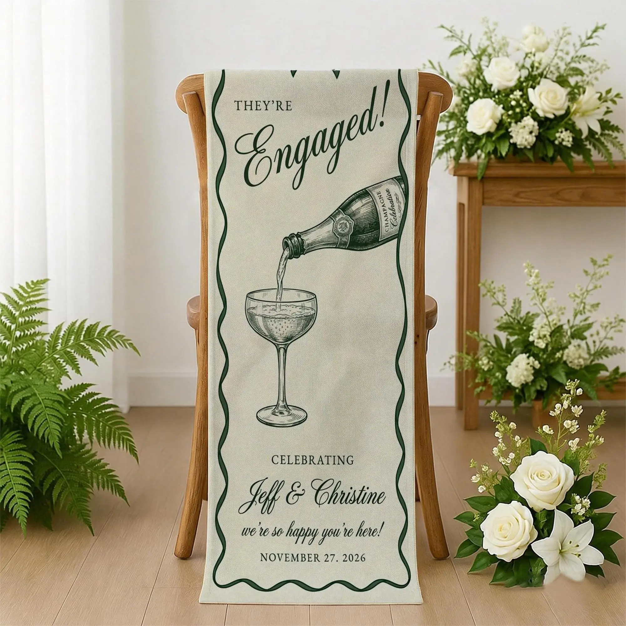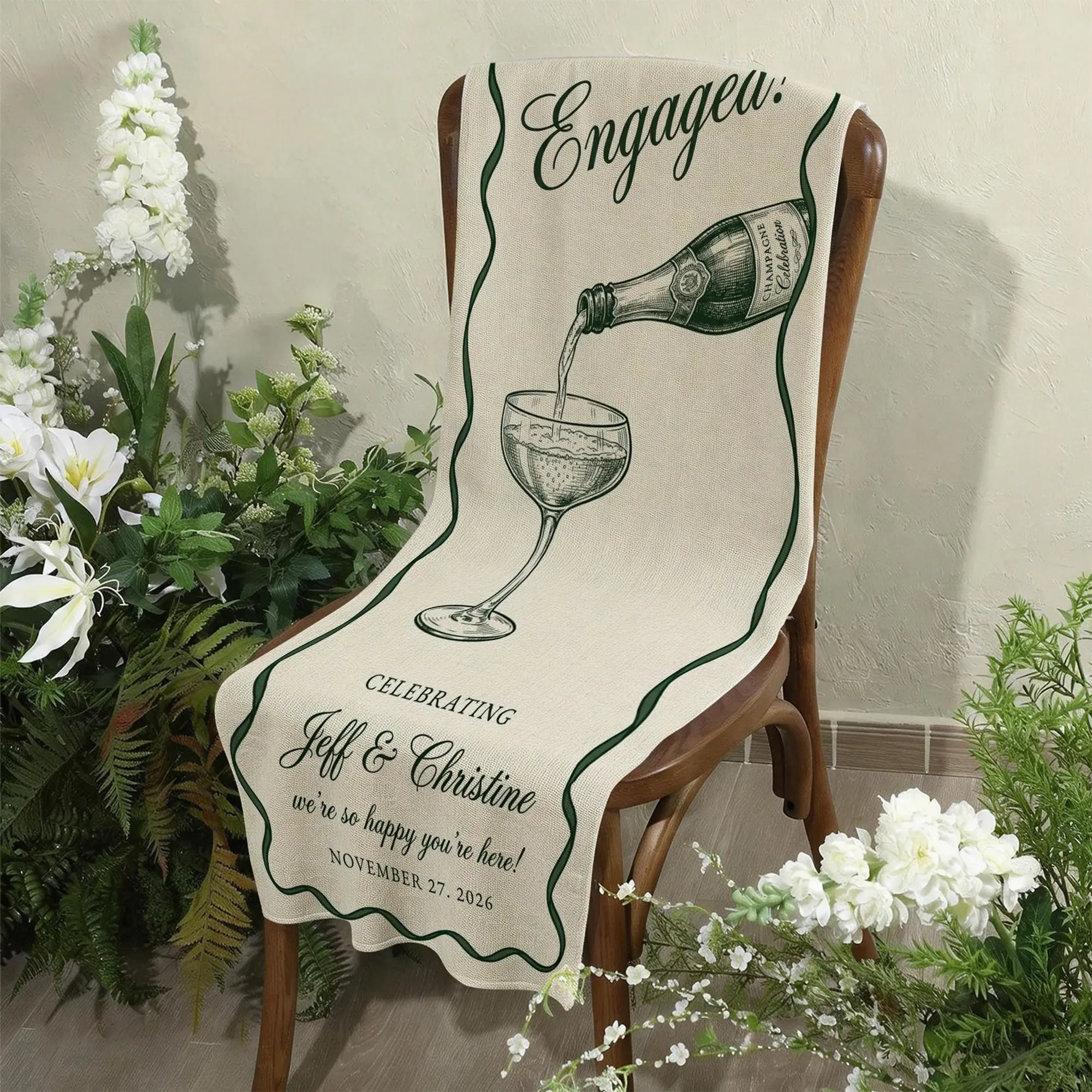 This personalized linen cotton tapestry is ideal for various events. Use it as a welcome engagement sign, party banner, or champagne decor. It's also great for garden weddings and couple parties. Personalize it for a unique touch. It makes a thoughtful gift for couples and a special Mothers Day present.