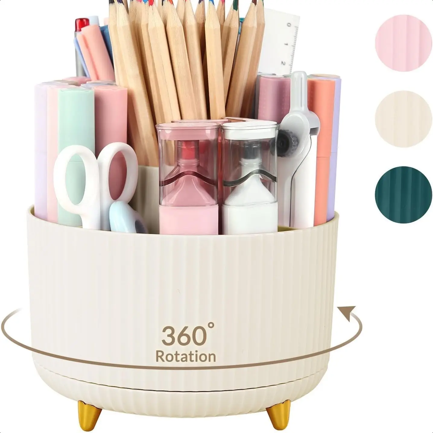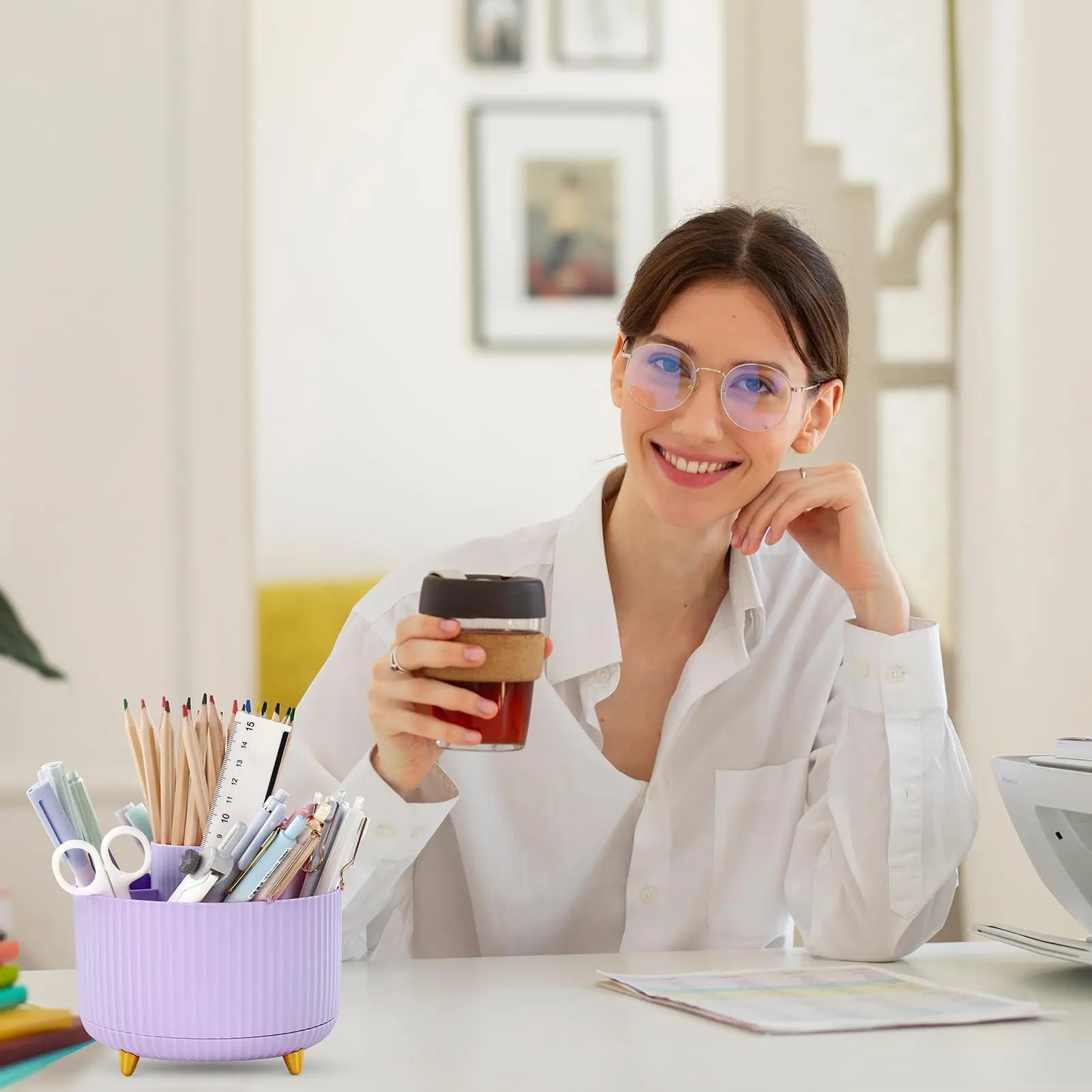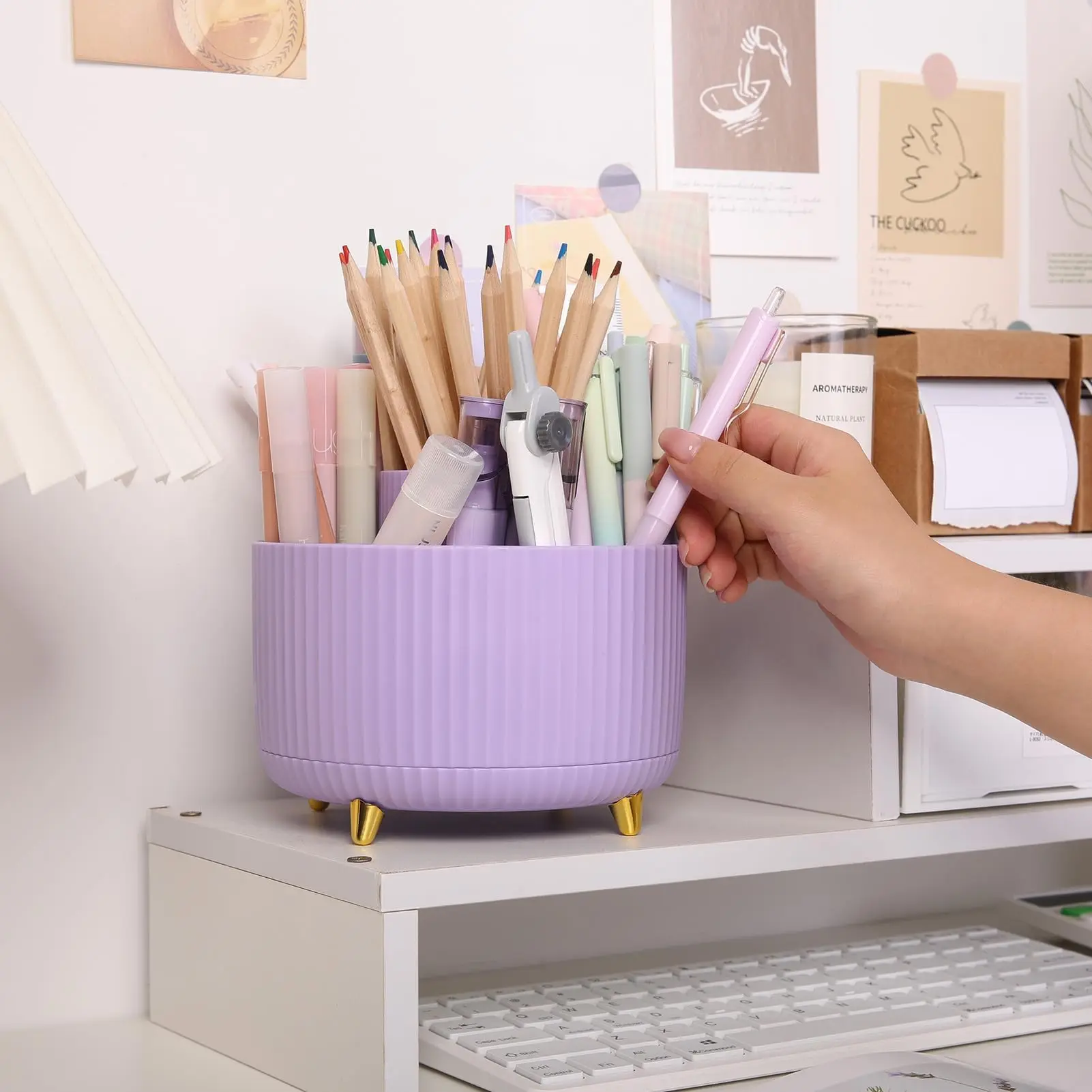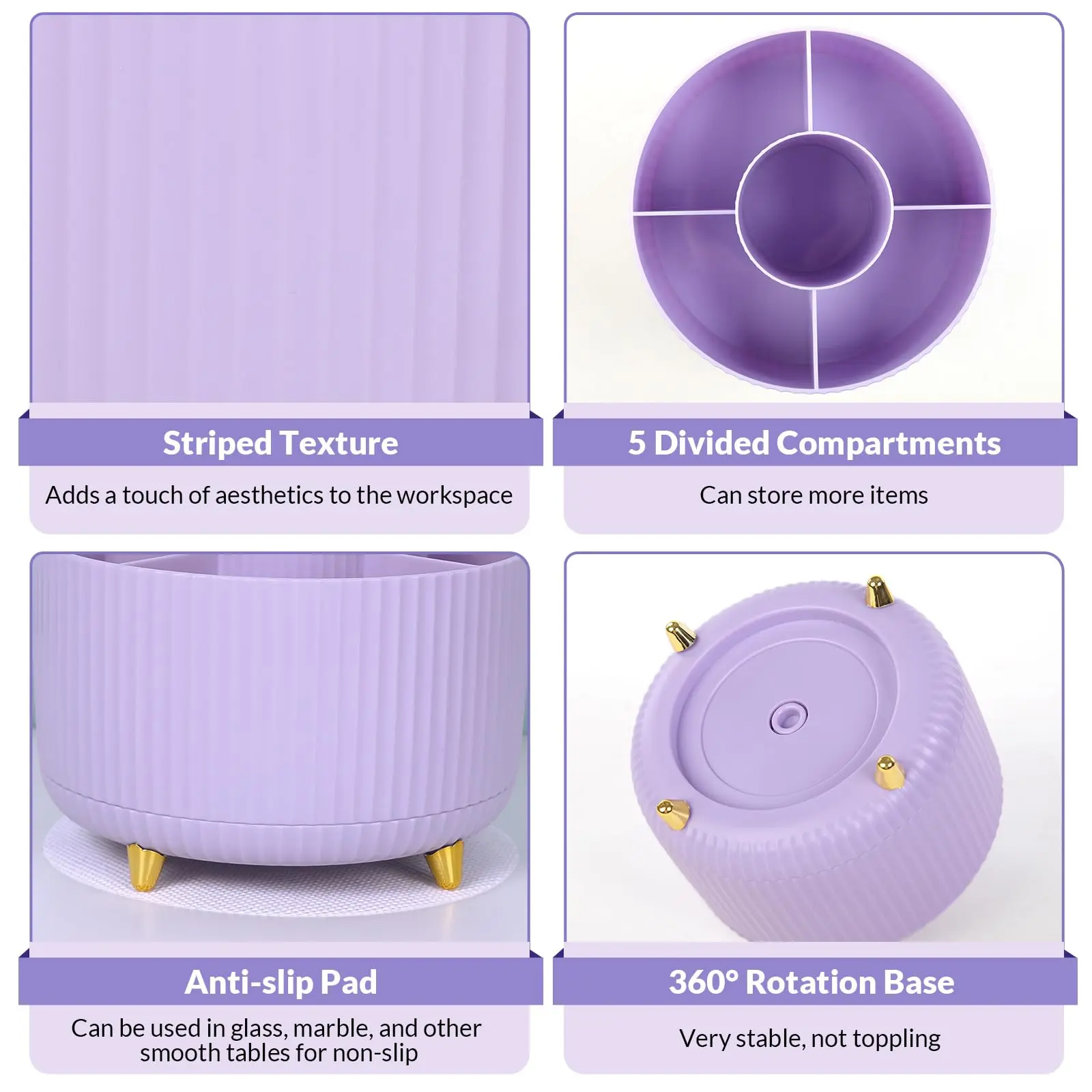 360 Rotating Purple Pen & Art Supply Organizer - 5 Slot Desk Organizer for Office, School, Home