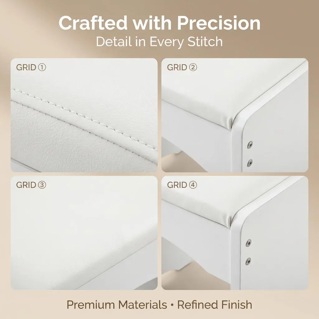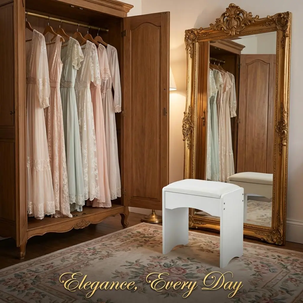 The padded seat is designed to provide a comfortable sitting experience. Perfect for daily makeup routines, skincare, or quick outfit changes.