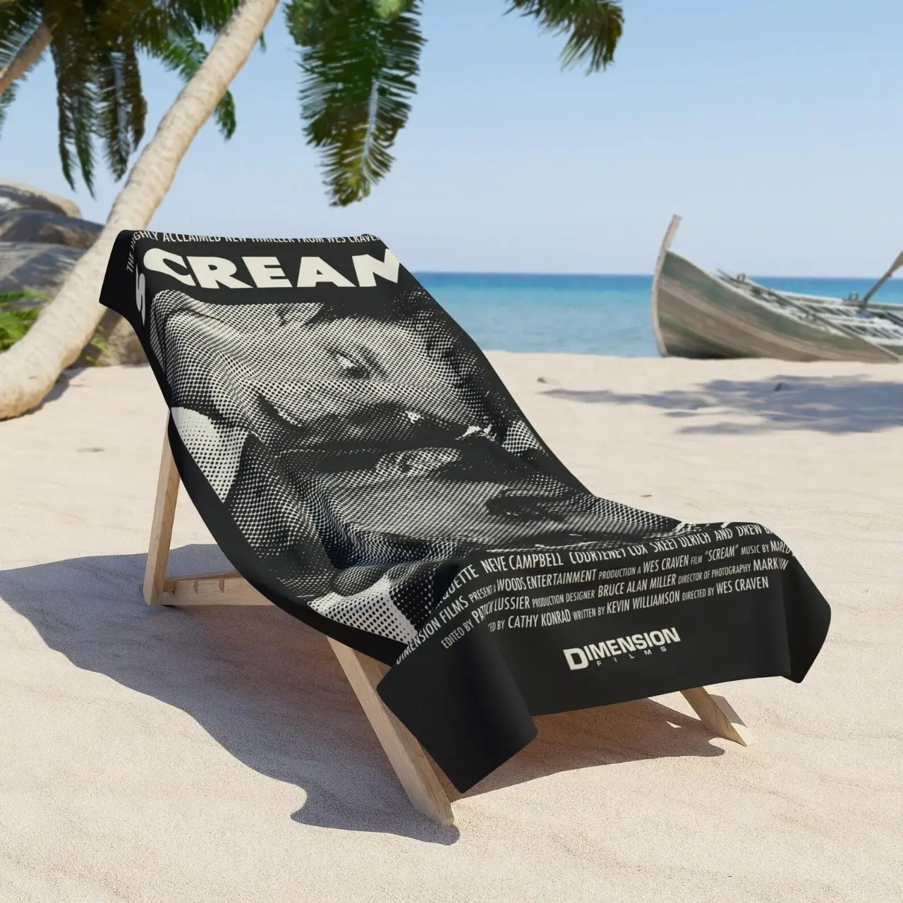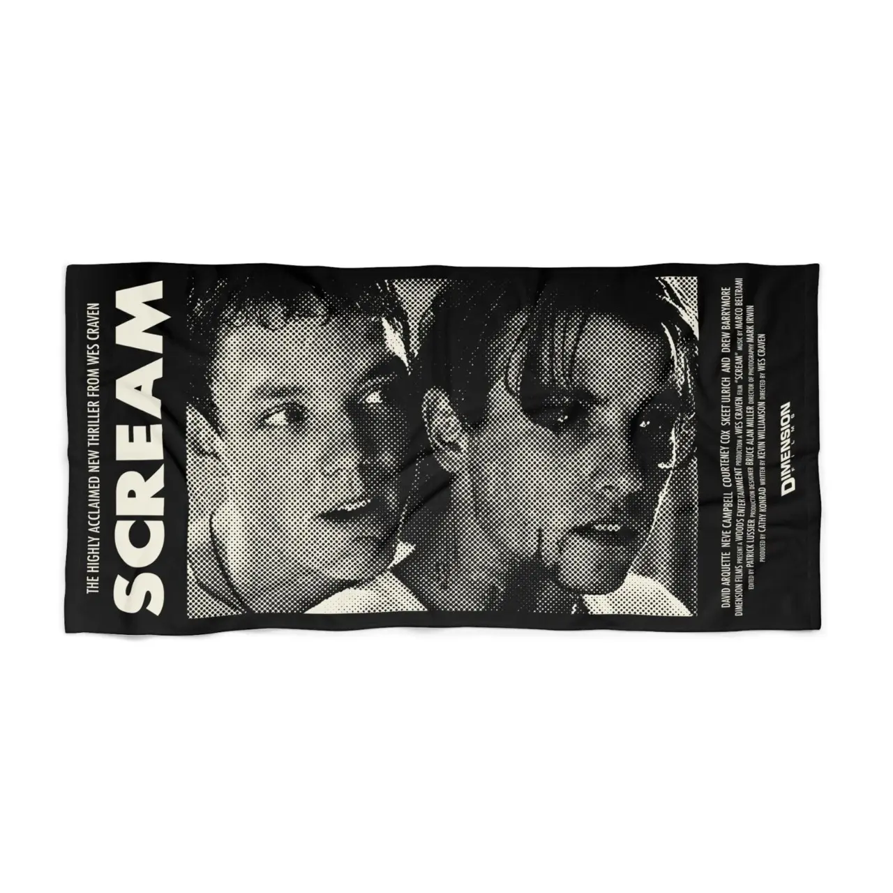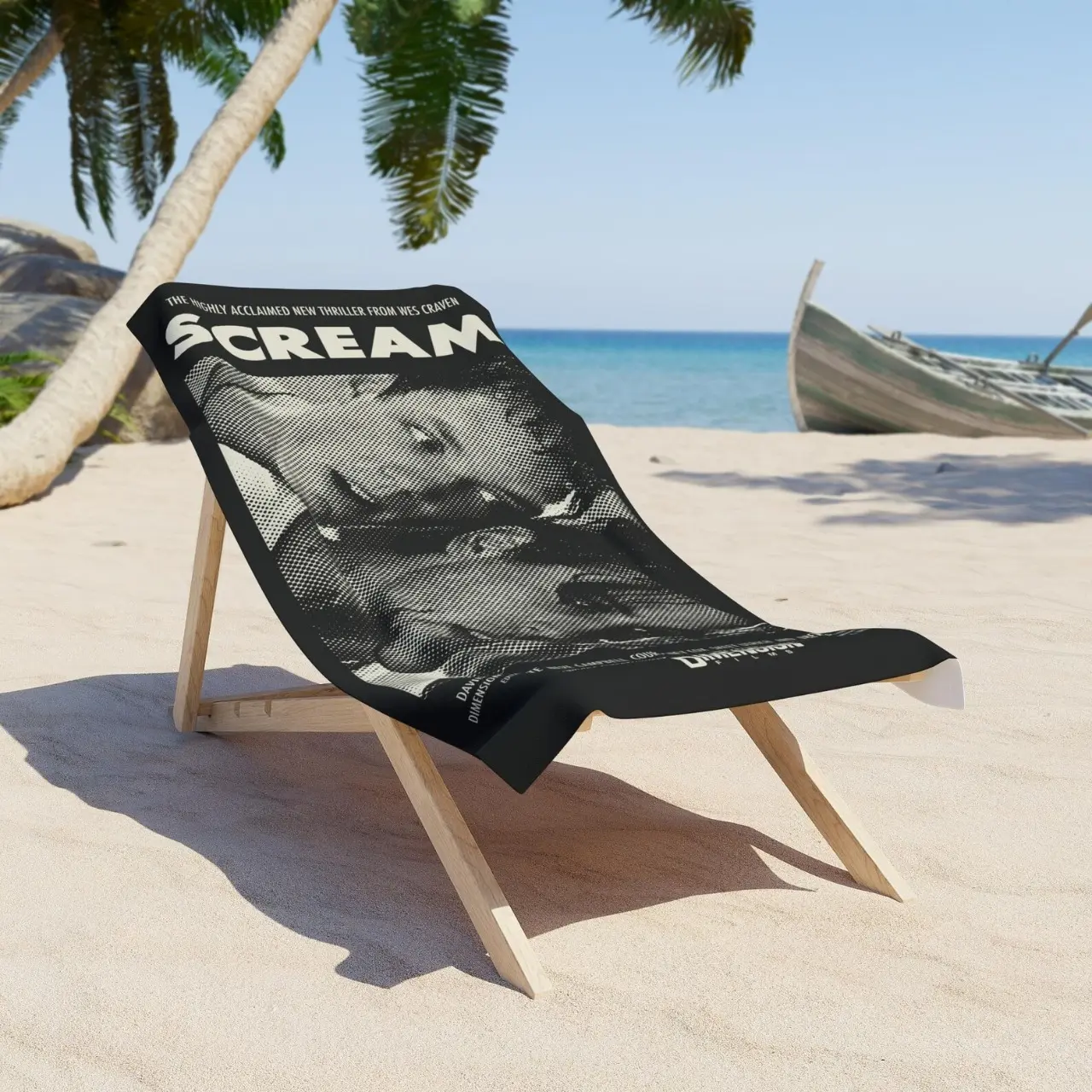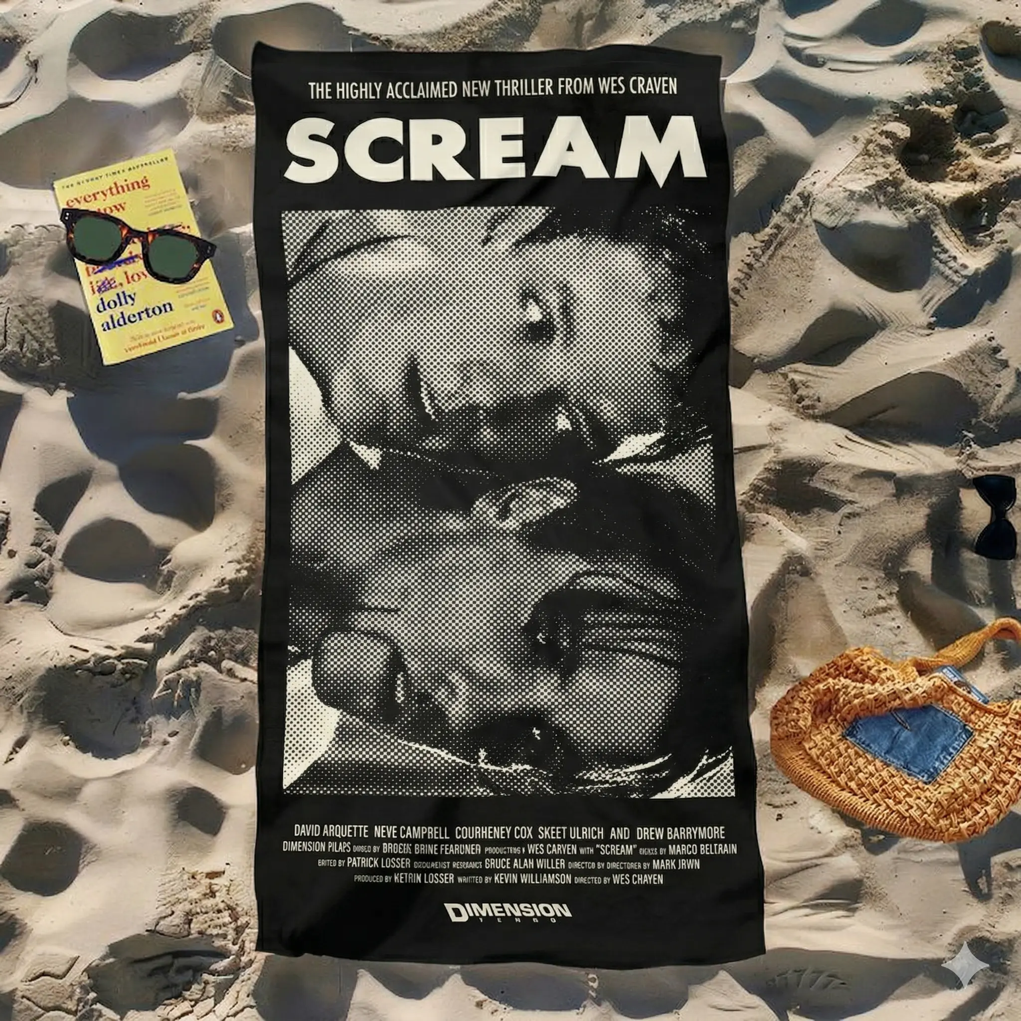 Beach days got you feeling less like a horror fanatic and more like a regular Joe? Say goodbye to that sad old towel and hello to our wicked "Scream" vintage movie poster beach towel. Featuring Billy and Stu, this gem will make sure you scream louder than any lifeguard’s whistle. Wrap yourself in 100% comfort while displaying your impeccable taste in iconic slasher flicks. Who needs sunscreen when you can be shaded by the dark vibes of ‘90s horror legends? Go ahead, lie back and contemplate your survival plan for a horror movie marathon under the sun.