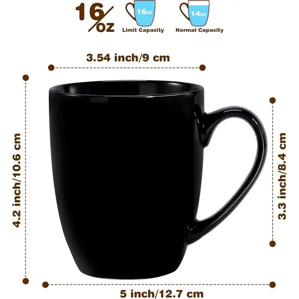 16oz Large Black Coffee Mug – Classic, Durable & Perfect for Everyday Use
