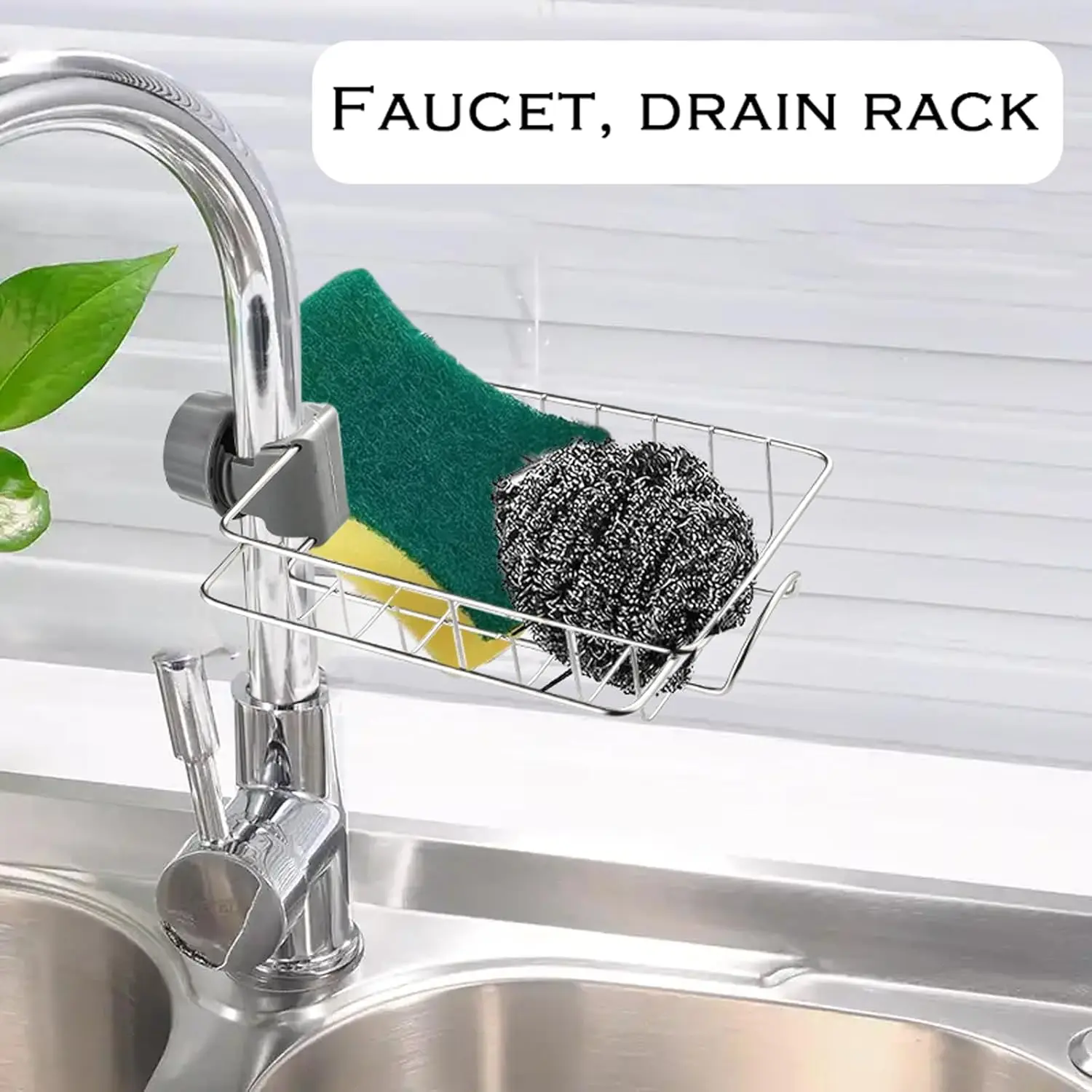 Stainless Steel Faucet Sponge Drain Rack, Multi-Purpose Kitchen & Bathroom Hanging Storage Shelf, No Tools Needed Adjustable Acrylic Straw Holder blade stand cork door hangers