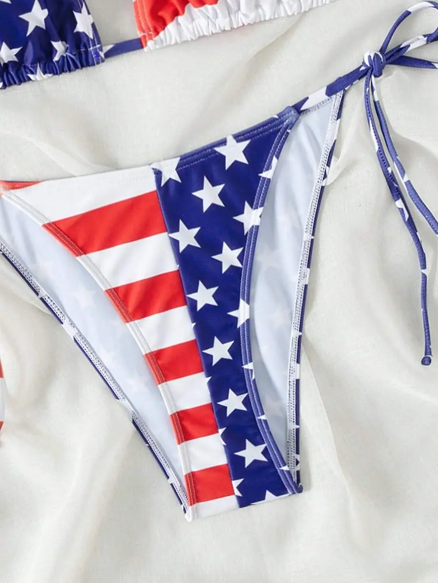 MINSARA 2pcs/Set Women's Springbreak Beachwear Summer Outfits, Spaghetti Strap Printed Beach Vacation Side Tie Bikini Set