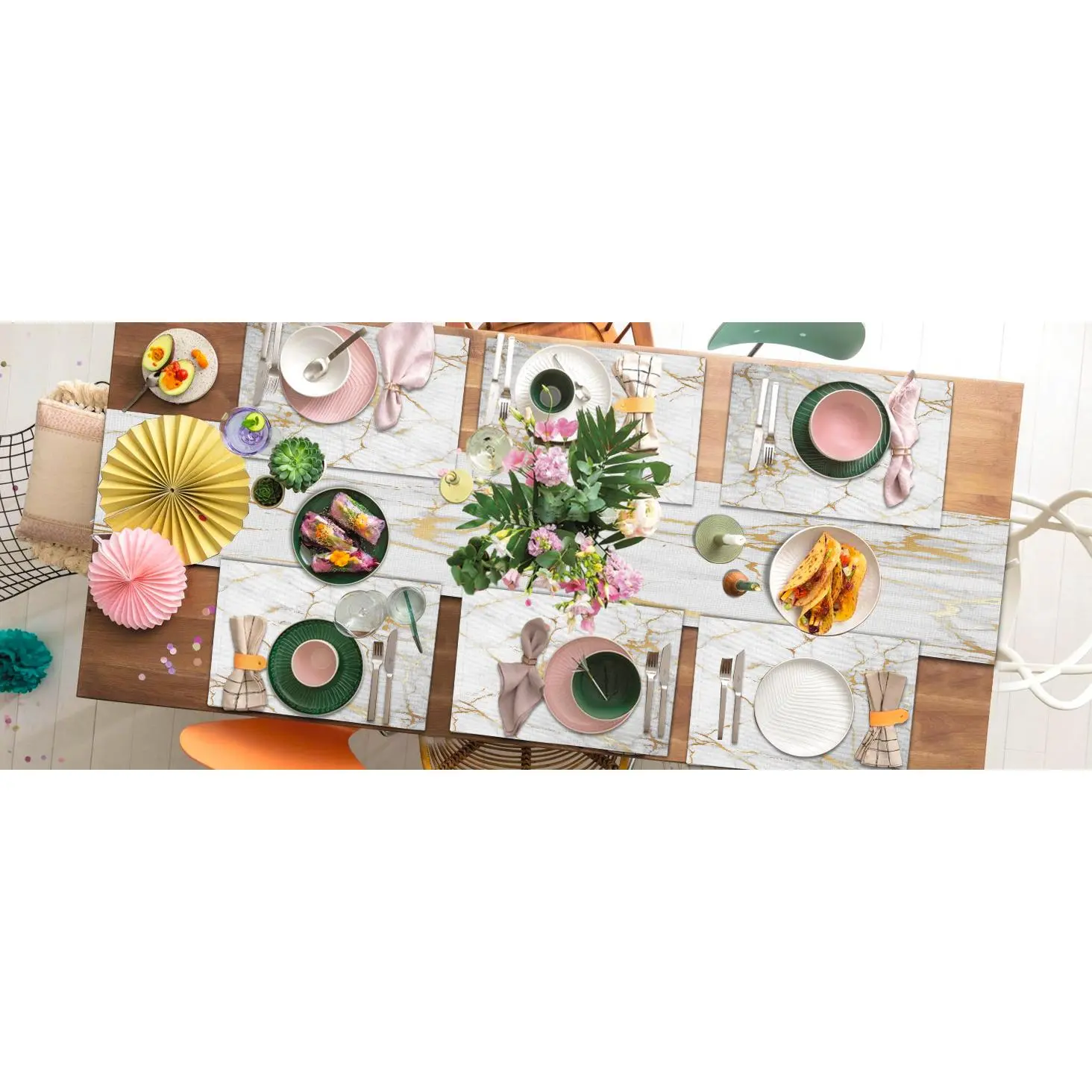 Luxury Gold Marble and Placemats Set of 6 Pieces, Gold Marble Placemats, Cloth Place Mats Indoor for,Washable for Dining Table