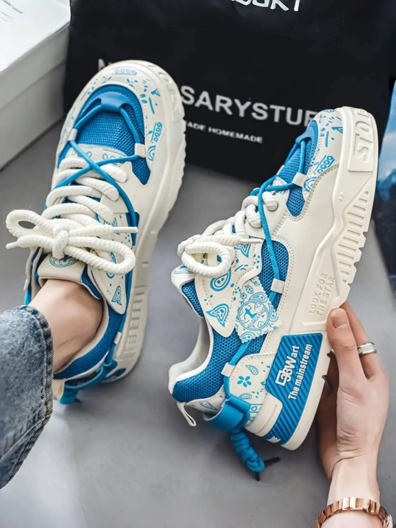 Unisex Beige-Blue Color-Block Paisley Sneakers: Thick Height-Increasing Sole + Breathable Mesh, Daily Street Trendy ShoesUnisex Beige-Blue Color-Block Paisley Sneakers: Thick Height-Increasing Sole + Breathable Mesh, Daily Street Trendy ShoesUnisex Beige-Blue Color-Block Paisley Sneakers: Thick Height-Increasing Sole + Breathable Mesh, Daily Street Trendy ShoesUnisex Beige-Blue Color-Block Paisley Sneakers: Thick Height-Increasing Sole + Breathable Mesh, Daily Street Trendy Shoes