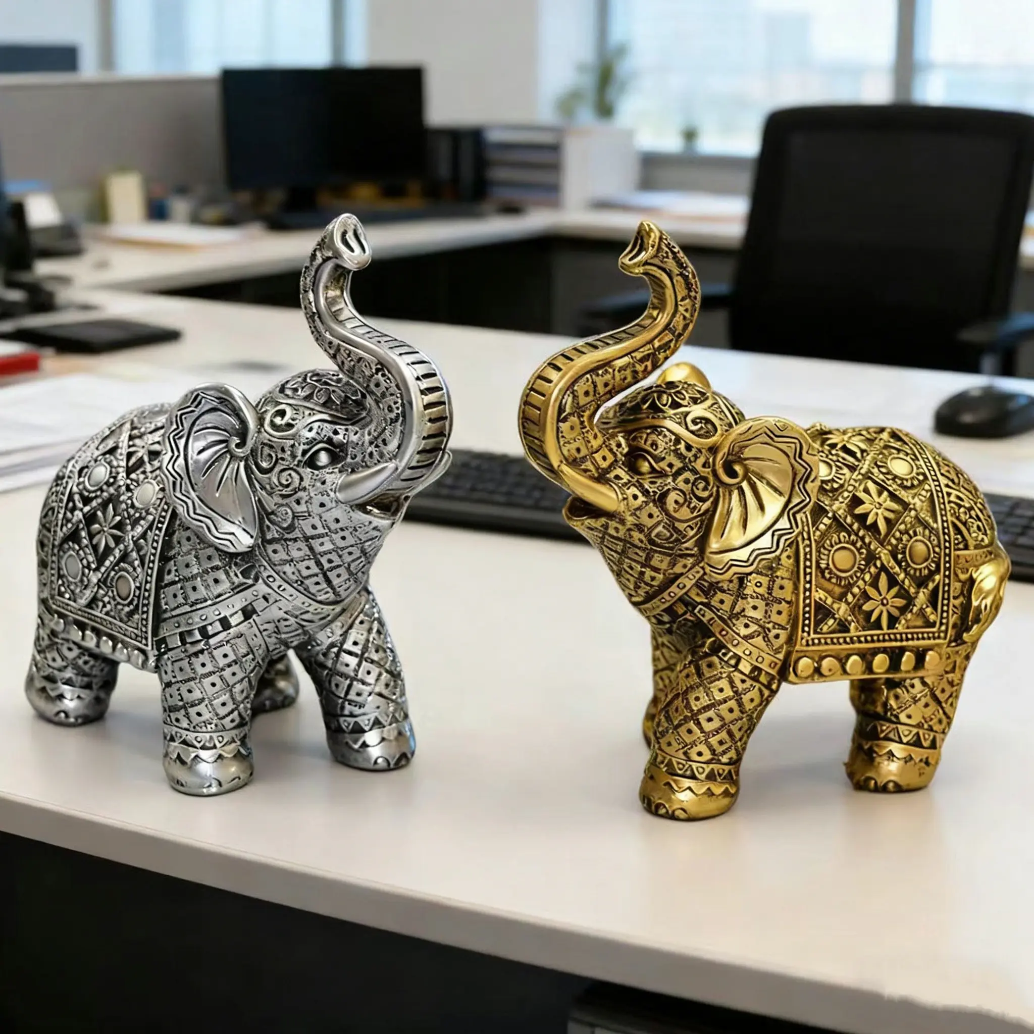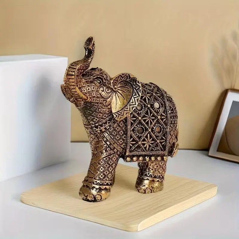 Lucky Wealth Elephant Decoration, Resin Statue Art Craft, Bookshelf Home Living Room Office Cafe Decor, Room Desktop Display Entrance Decor