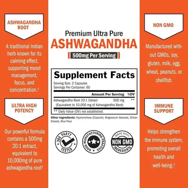 ·The Quality Difference - Our ashwagandha supplements are gluten free and non-GMO and come in easy-swallow veggie capsules for optimal absorption