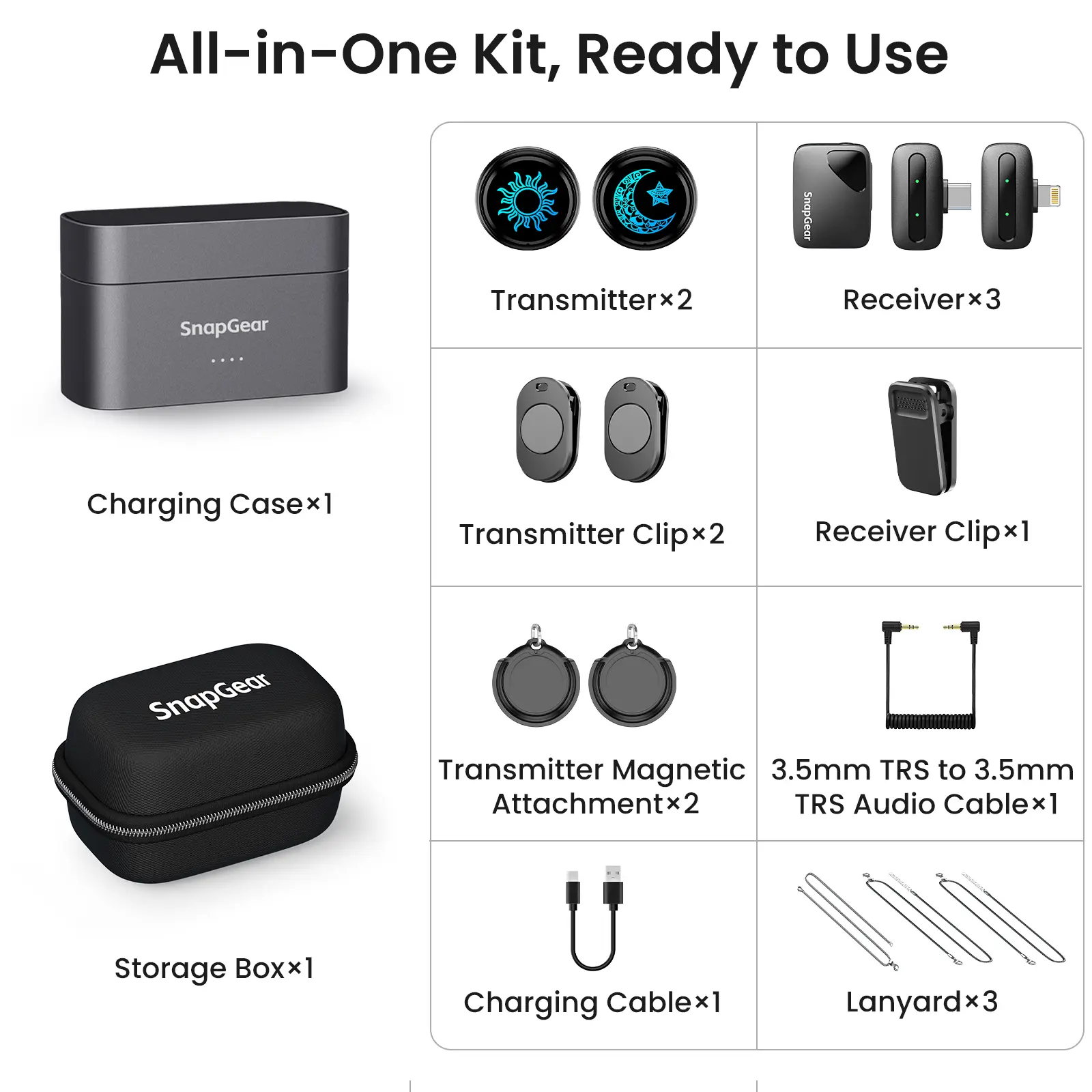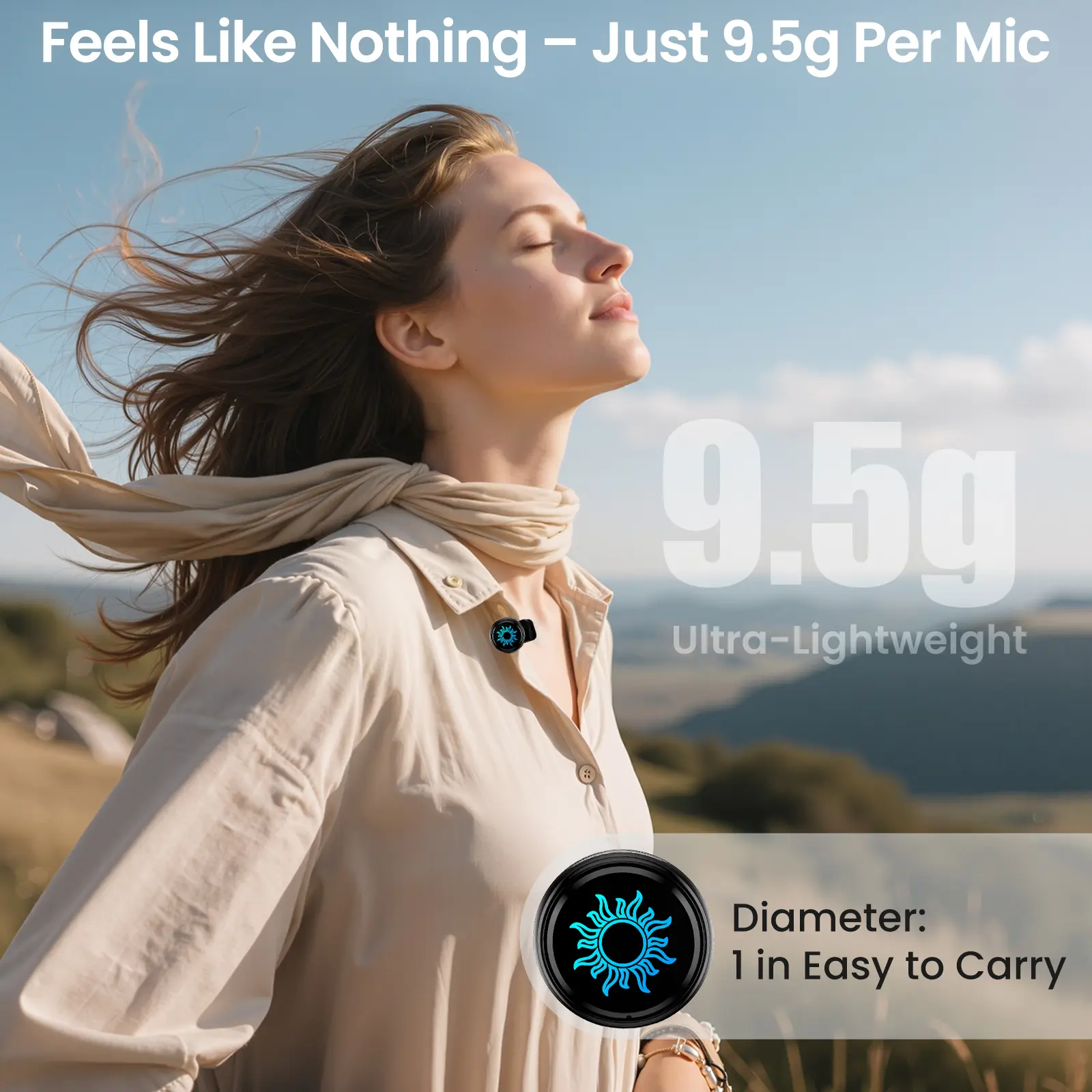 At just 9.5 grams, the SnapGear M2 is virtually weightless, ensuring all-day comfort. Ideal for extended streaming and interviews, this microphone is a must-have for content creators. Its ultralight design makes it perfect for long hours of use without any discomfort.