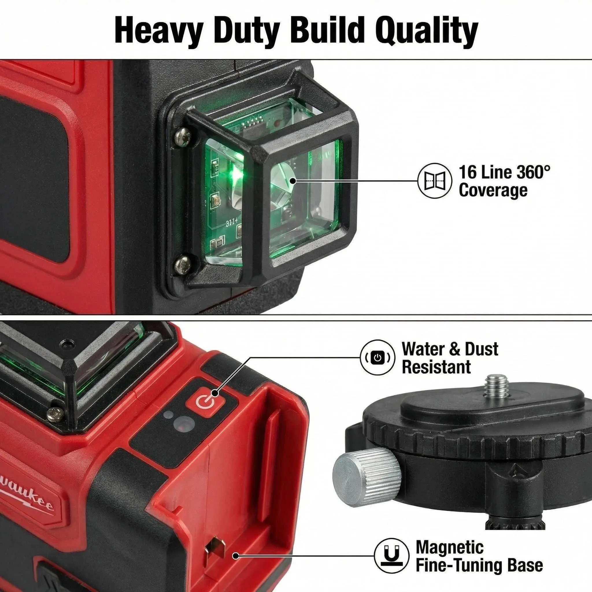 Milwaukee Laser Level 16 Lines Construction Tool 4 d green beam self leveling 360