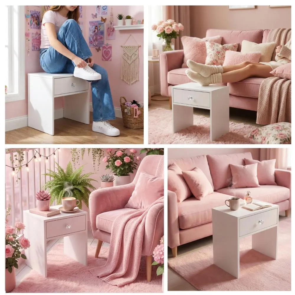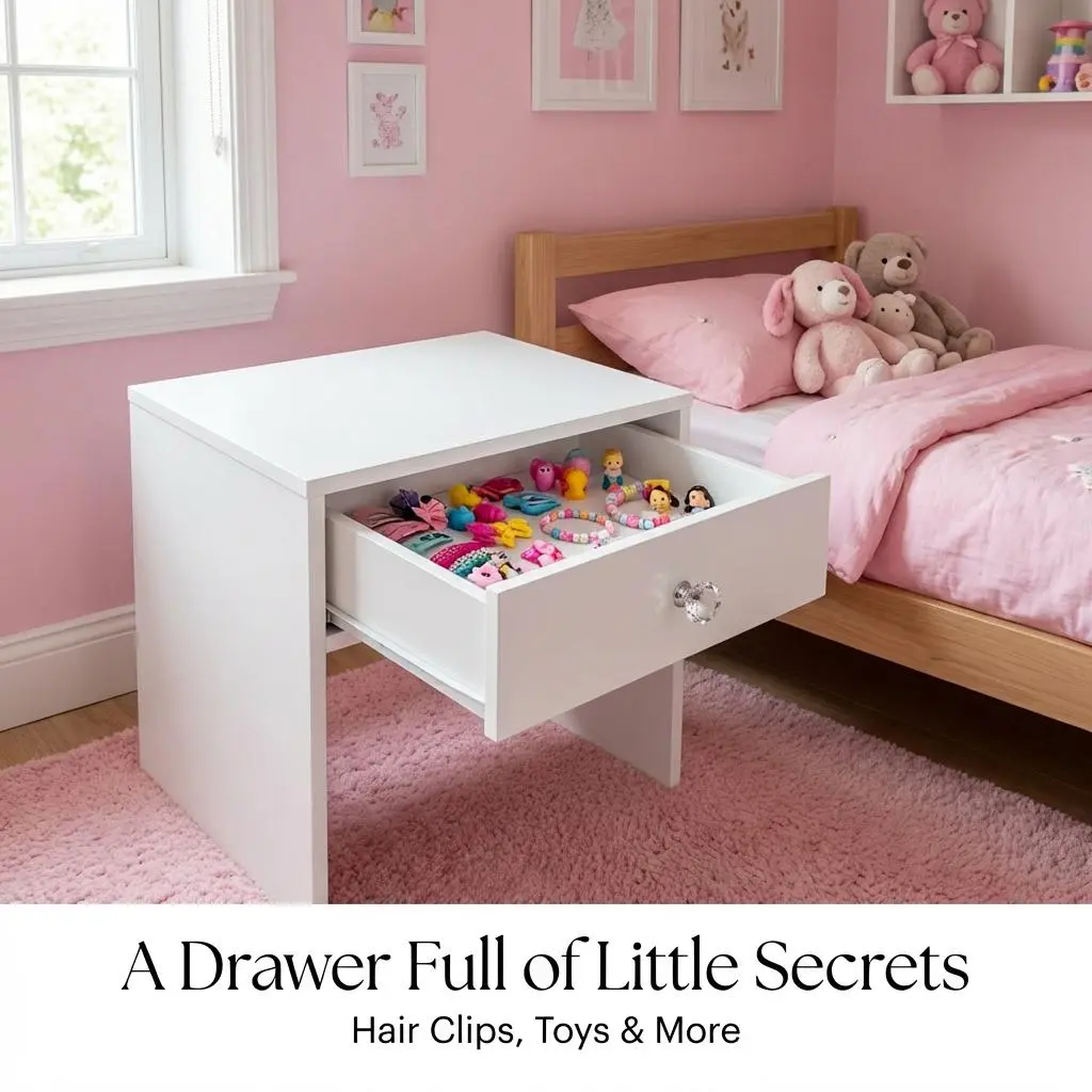 The single drawer offers perfect everyday storage for your essentials like chargers, skincare, or small accessories—keeping your space neat without feeling bulky.