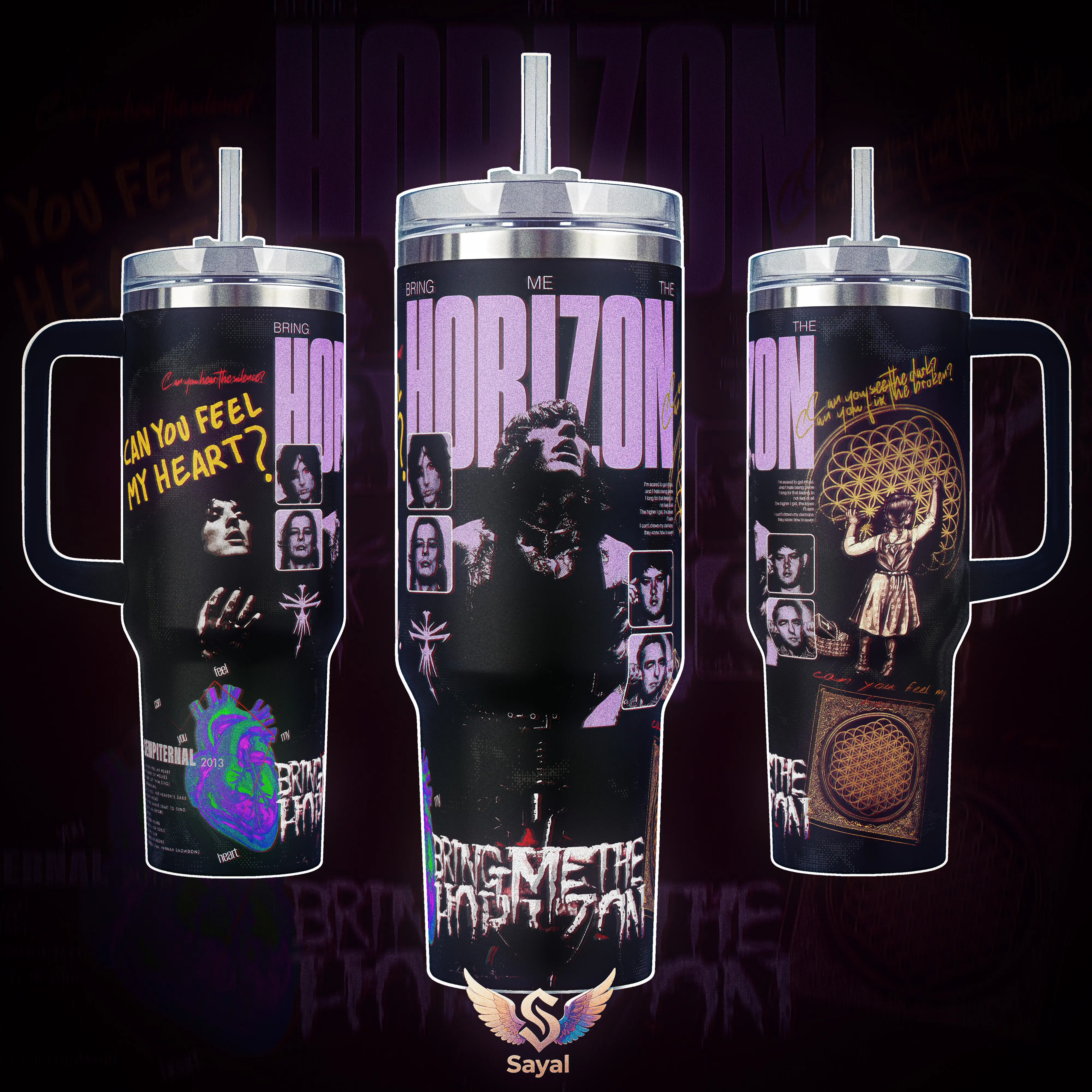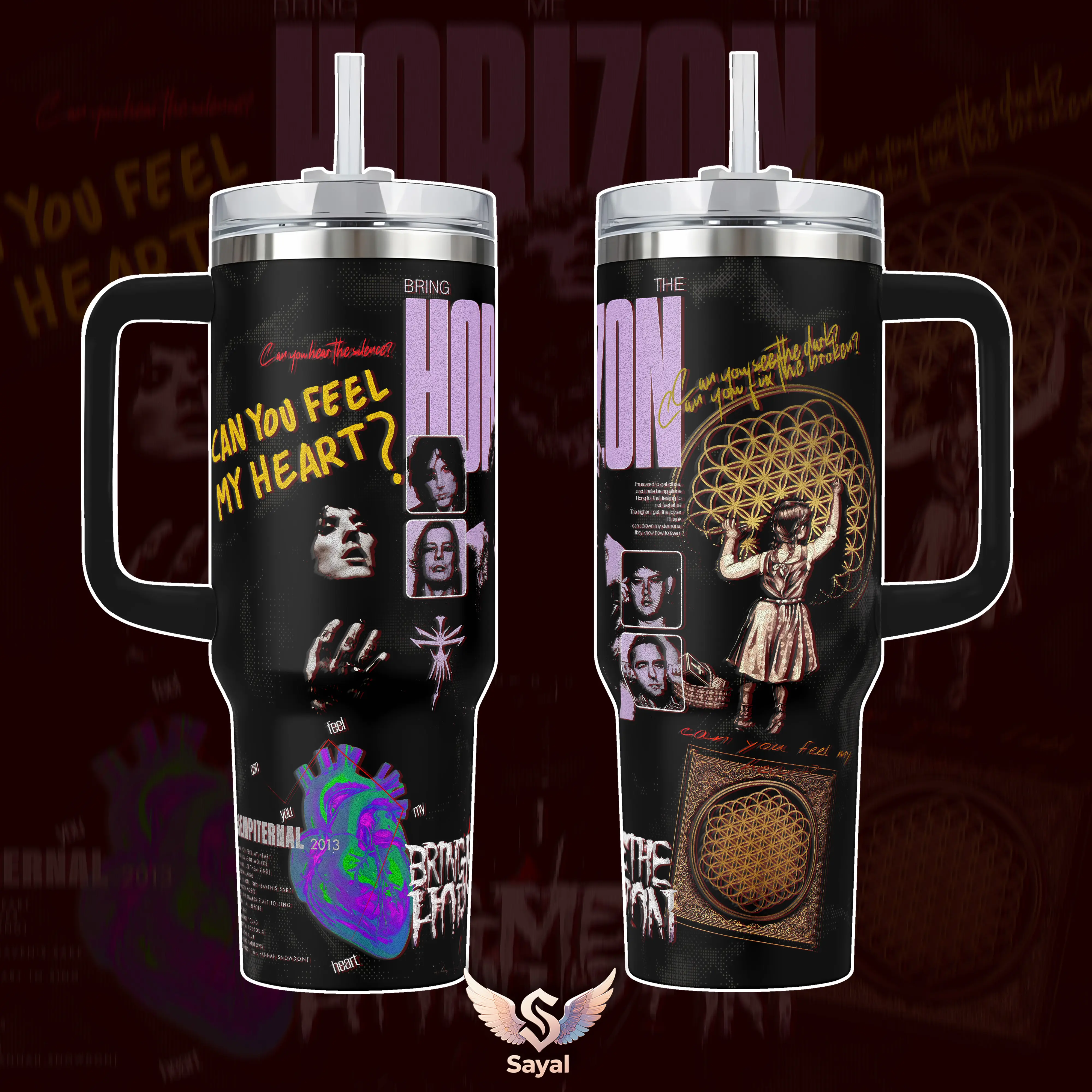 BRING ME THE HORIZON Can You Feel My Heart BMTH Sempiternal METALCORE Sayal 40 oz Vacuum Insulated Cup Straw 12H Hot Cold For Music Lovers & Aesthetic Vibes Grunge Rock Style Splash-Proof 18/8 Stainless Steel Comfort Handle Mug For Fans