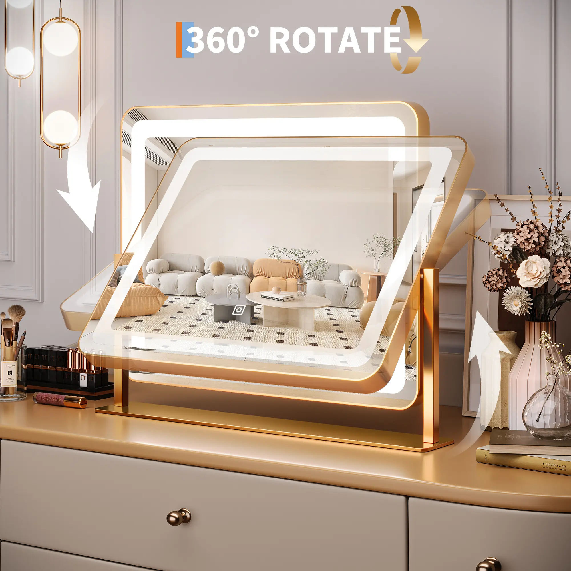 ·【360° Rotation & Stability】Enjoy complete flexibility with this lighted makeup mirror. Its 360-degree rotation allows you to find the perfect angle effortlessly while its sturdy aluminum frame ensures stability during use. This mirror is designed to provide a premium experience for those seeking both functionality and durability in their desk mirror.
