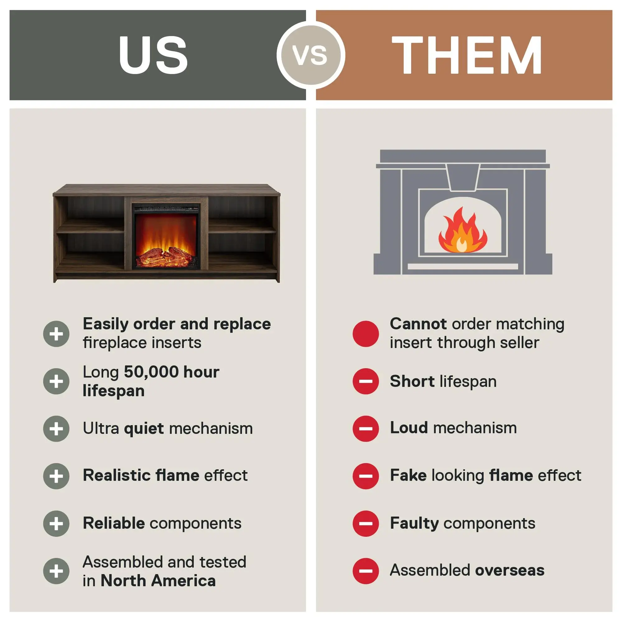 18" HEATER INSERT: The electric fireplace heater insert can be used with or without heat so you can enjoy the flame effect even in the warm summer months. The insert can heat a room up to 400 sq. ft. and plugs into a standard 120V outlet