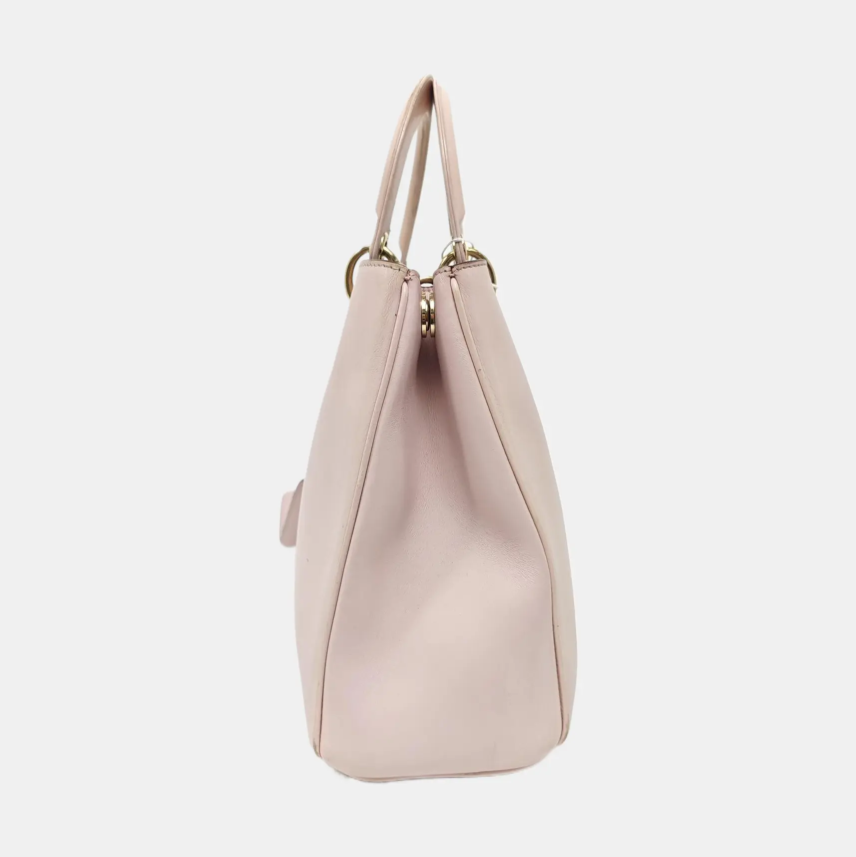 This bag combines functionality with fashion, making it a practical choice for everyday use. Its light pink leather and gold hardware ensure it stands out while remaining timeless.