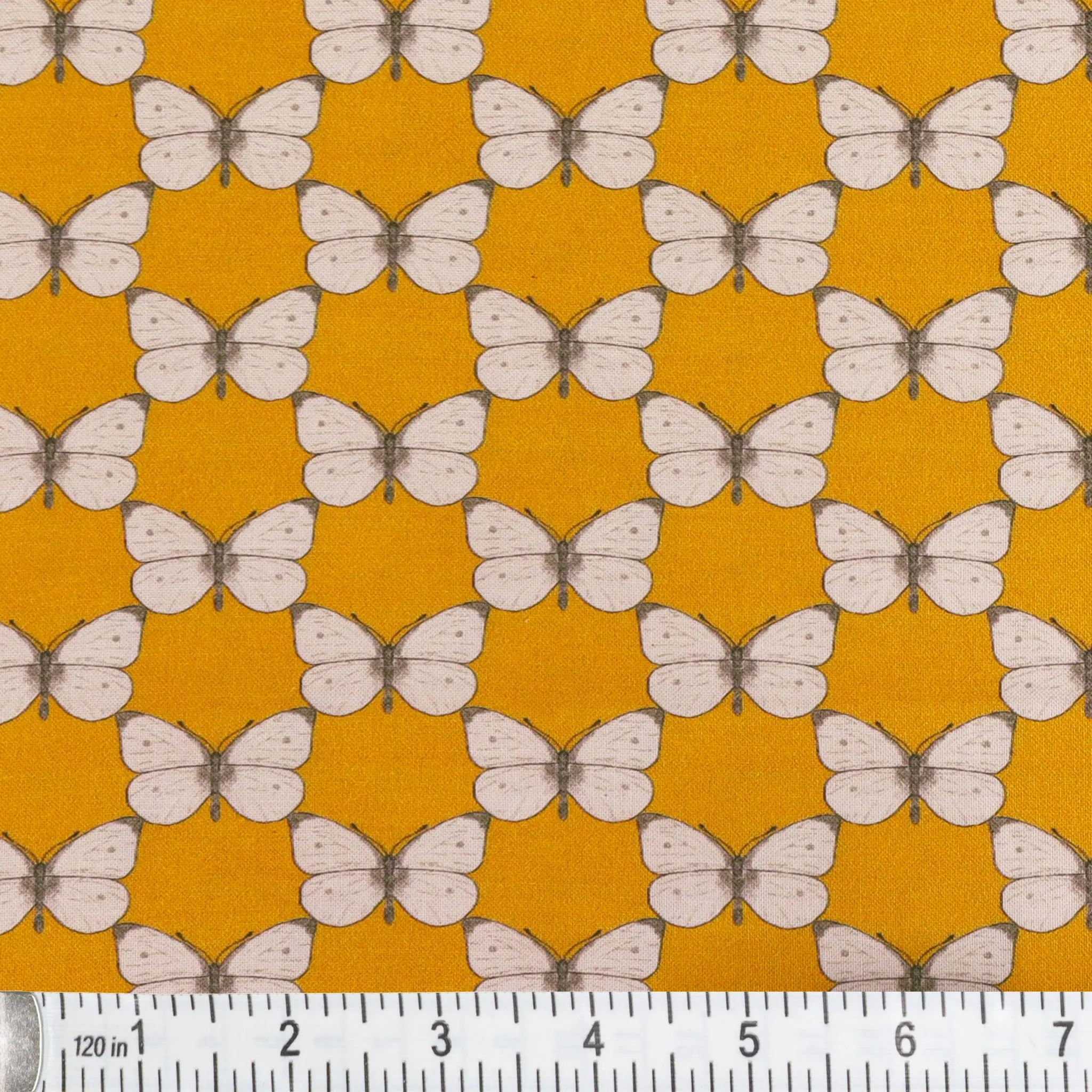 Elevate your creations with its blend of natural beauty and classic design, allowing you to transform your quilting projects into timeless, beautiful, elegant works of art. This sophisticated design features white sketched butterflies arranged in a graceful, symmetrical pattern. The intricate detail of the wings adds a touch of realism while maintaining a subtle vintage charm. This fabric pattern is available in four color choices: golden mustard yellow, soft lavender, muted teal, and calming periwinkle blue. This fabric brings versatility and style to any creation.