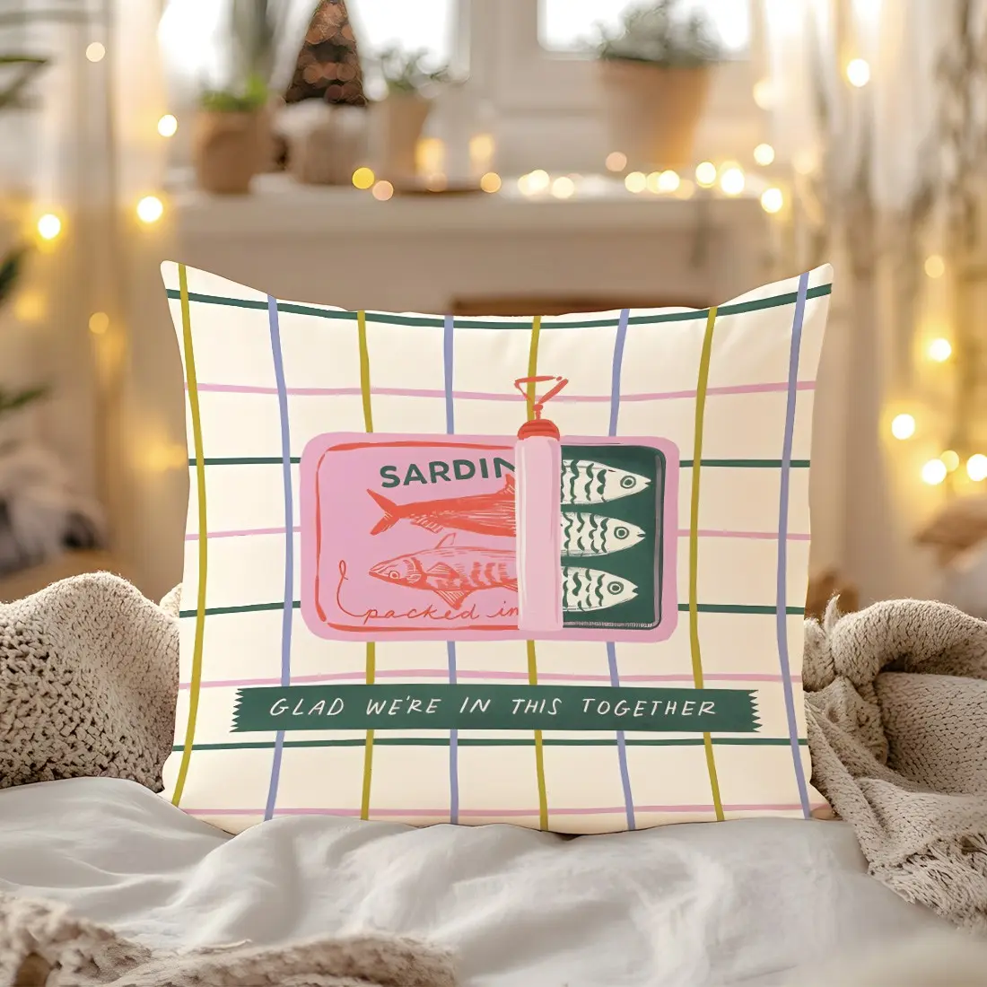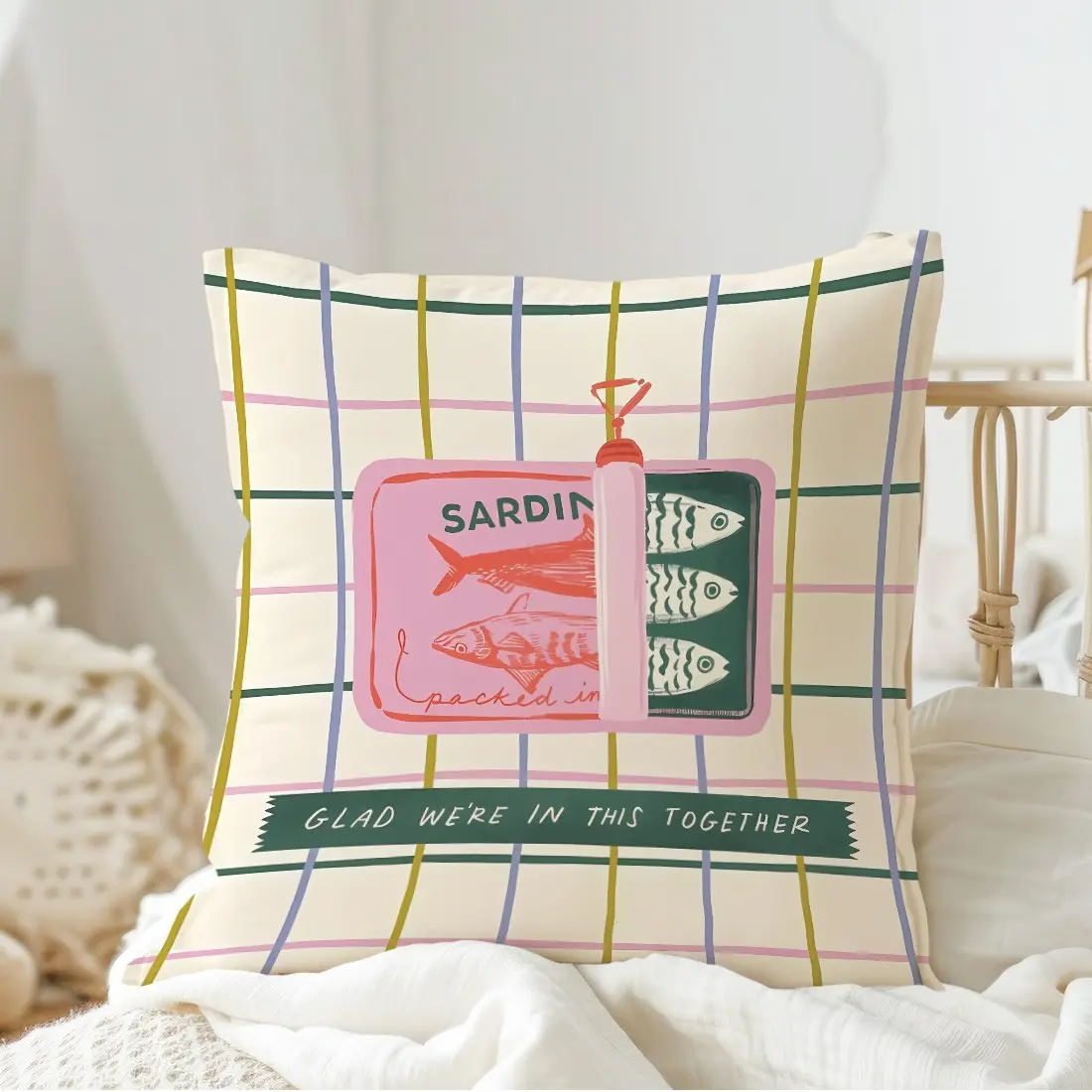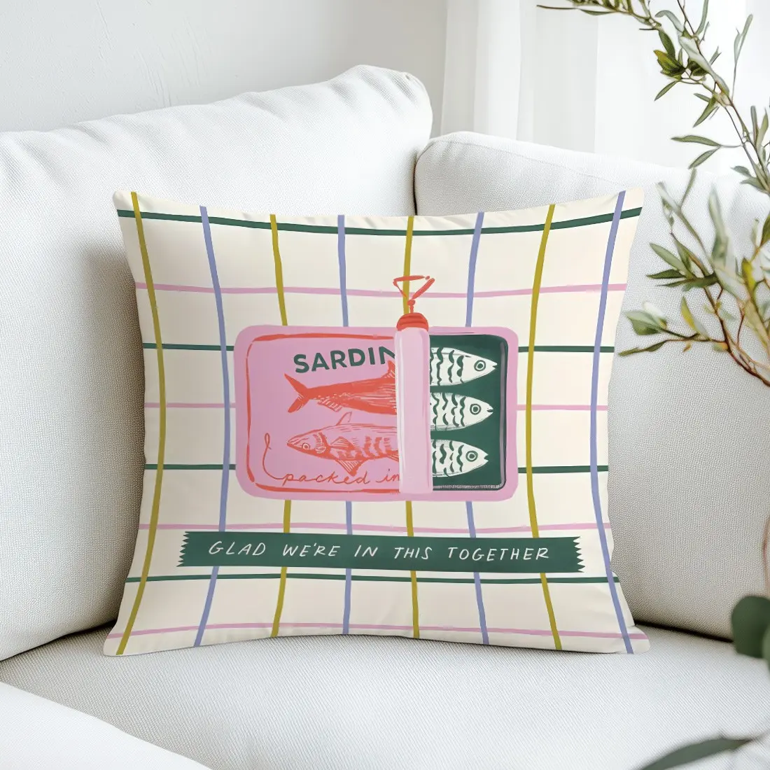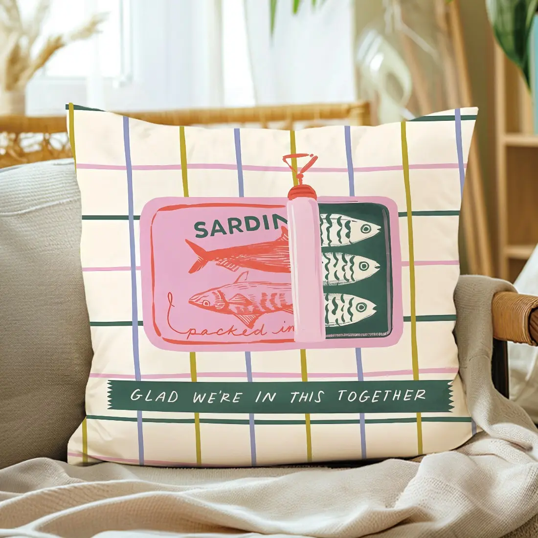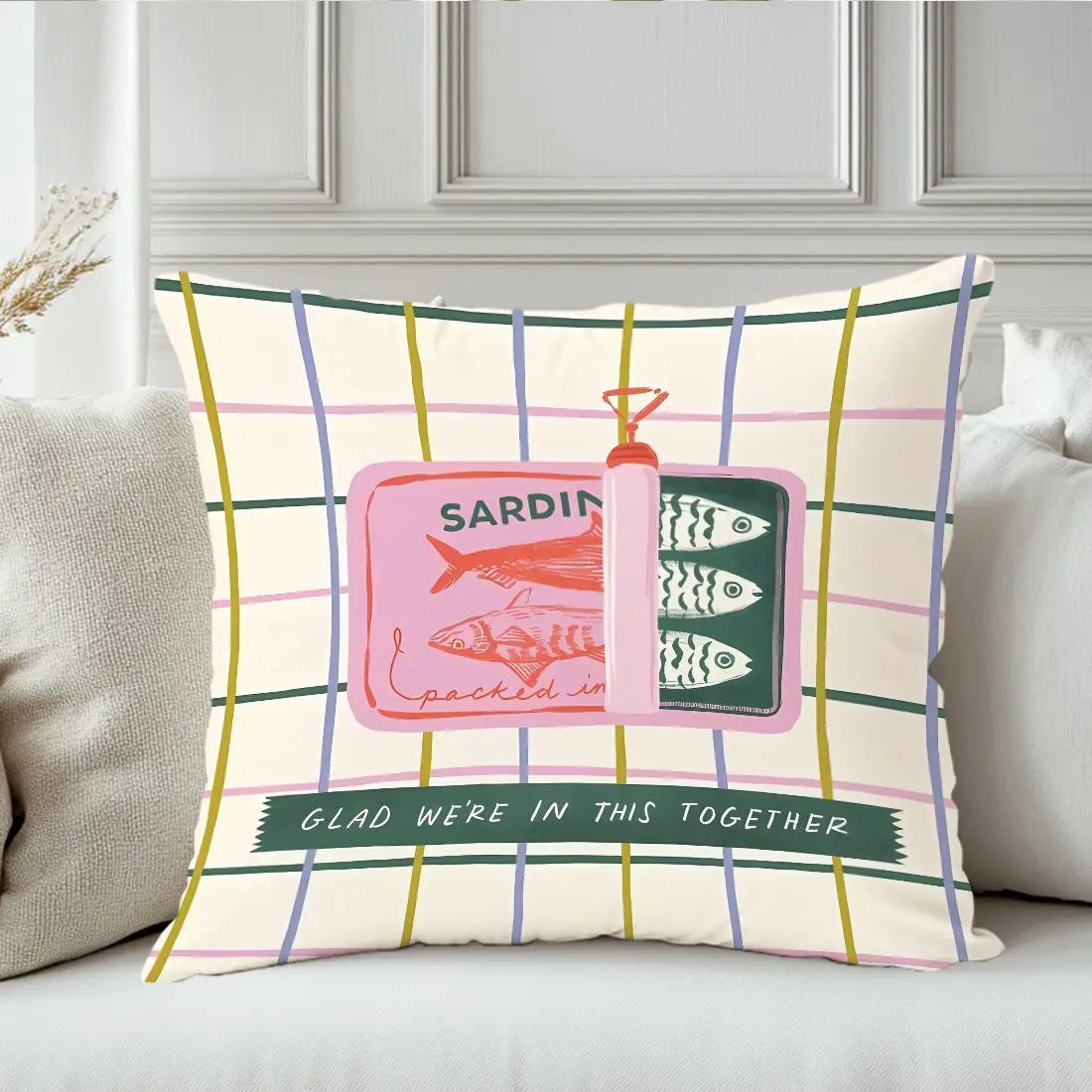 Sardine Can Illustration Pillow Cover, Single-Sided Print, Home Decor for Living Room Bedroom, No Insert Included