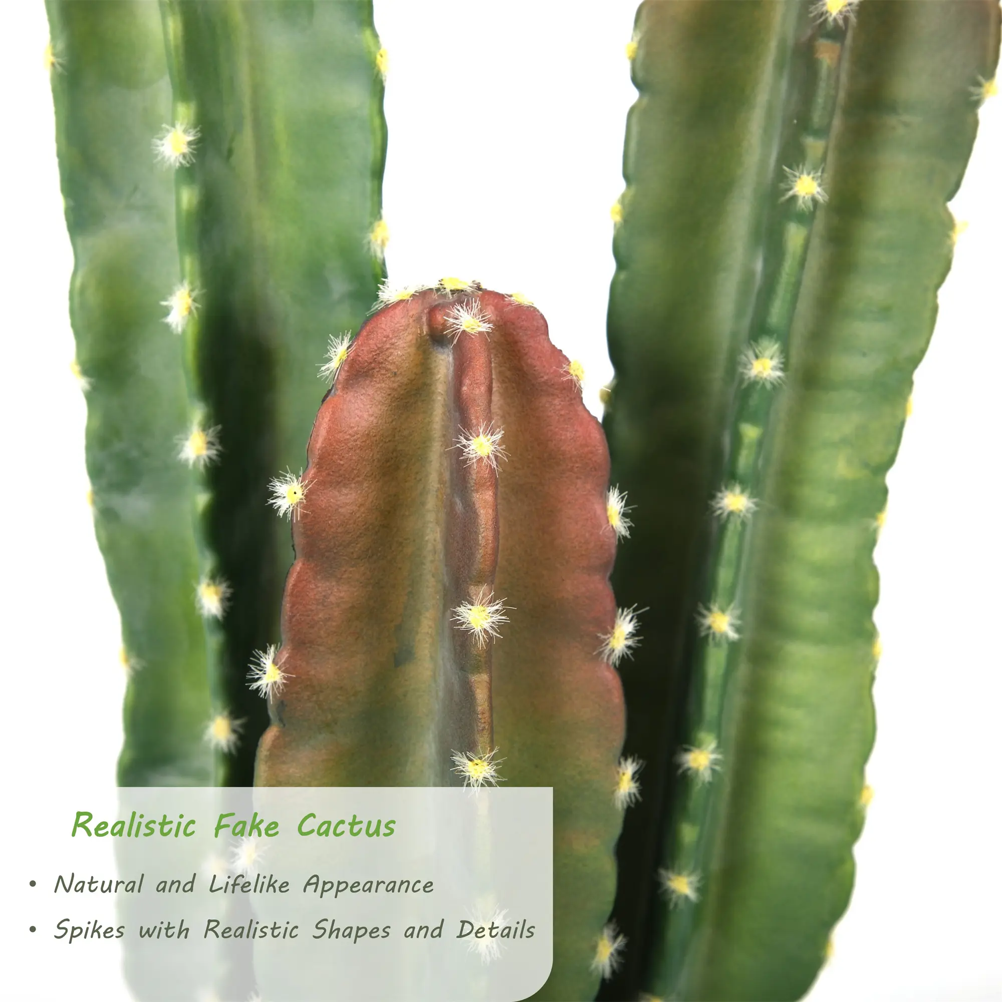Designed with natural, organic details—from gradient green-to-rust colored stems to tiny, textured spines—this artificial cactus mimics the look of a real desert cactus perfectly. The subtle color variations and realistic texture ensure it blends naturally into any decor, no cheap "plastic" look!