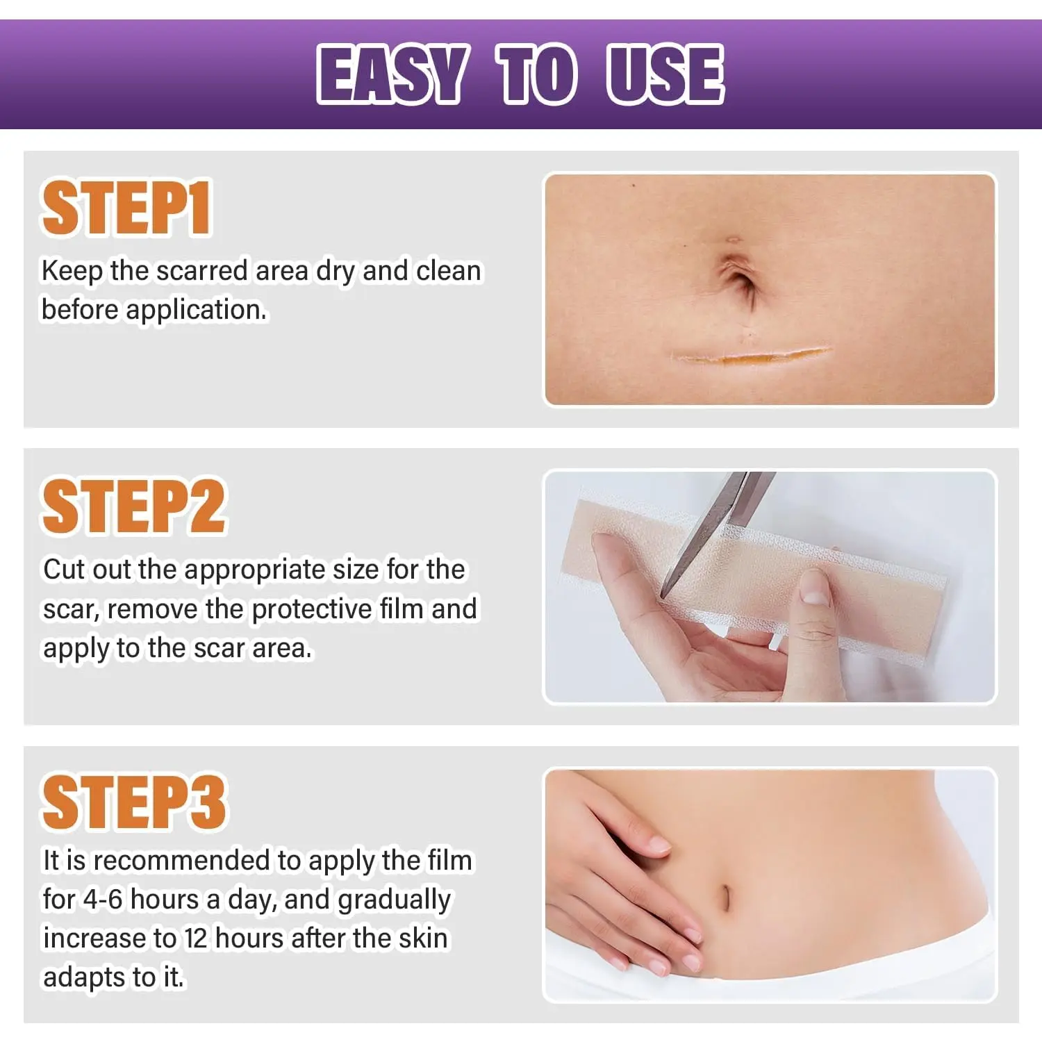 AirroYE Premium Silicone Scar Sheets 1.6"x120" Roll-3M Reusable Effective Removal for Surgical Scars Healing Keloids C-Section Tummy Tuck Non Irritant Flexible Breathable Comfortable Scar Treatment
