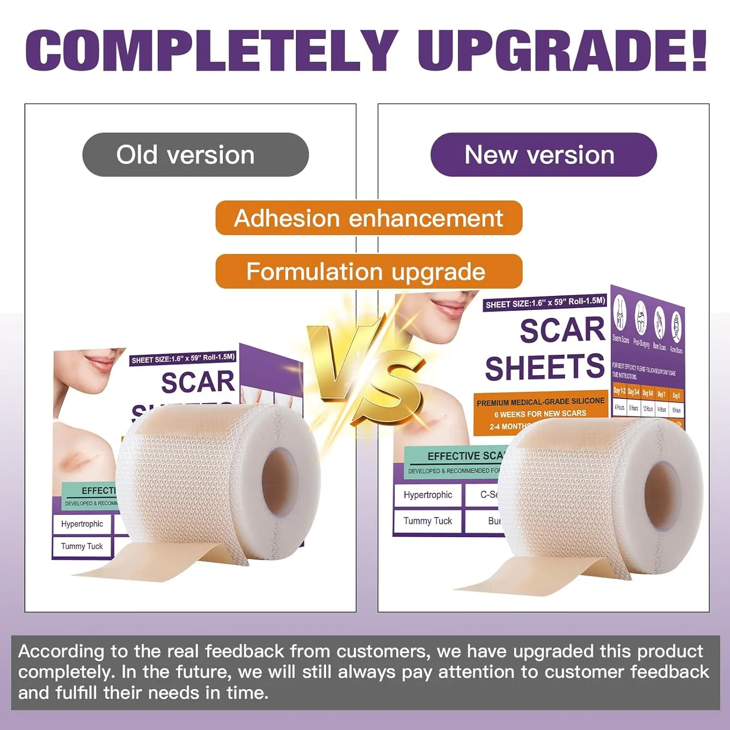 Silicone Scar Sheets,Silicone Scar Tape,Silicone Scar Removal Strips for Surgical,C-Section,Tummy Tuck,Keloid Scars (1.6"X 59" Roll-1.5M) Keloid Bump Removal