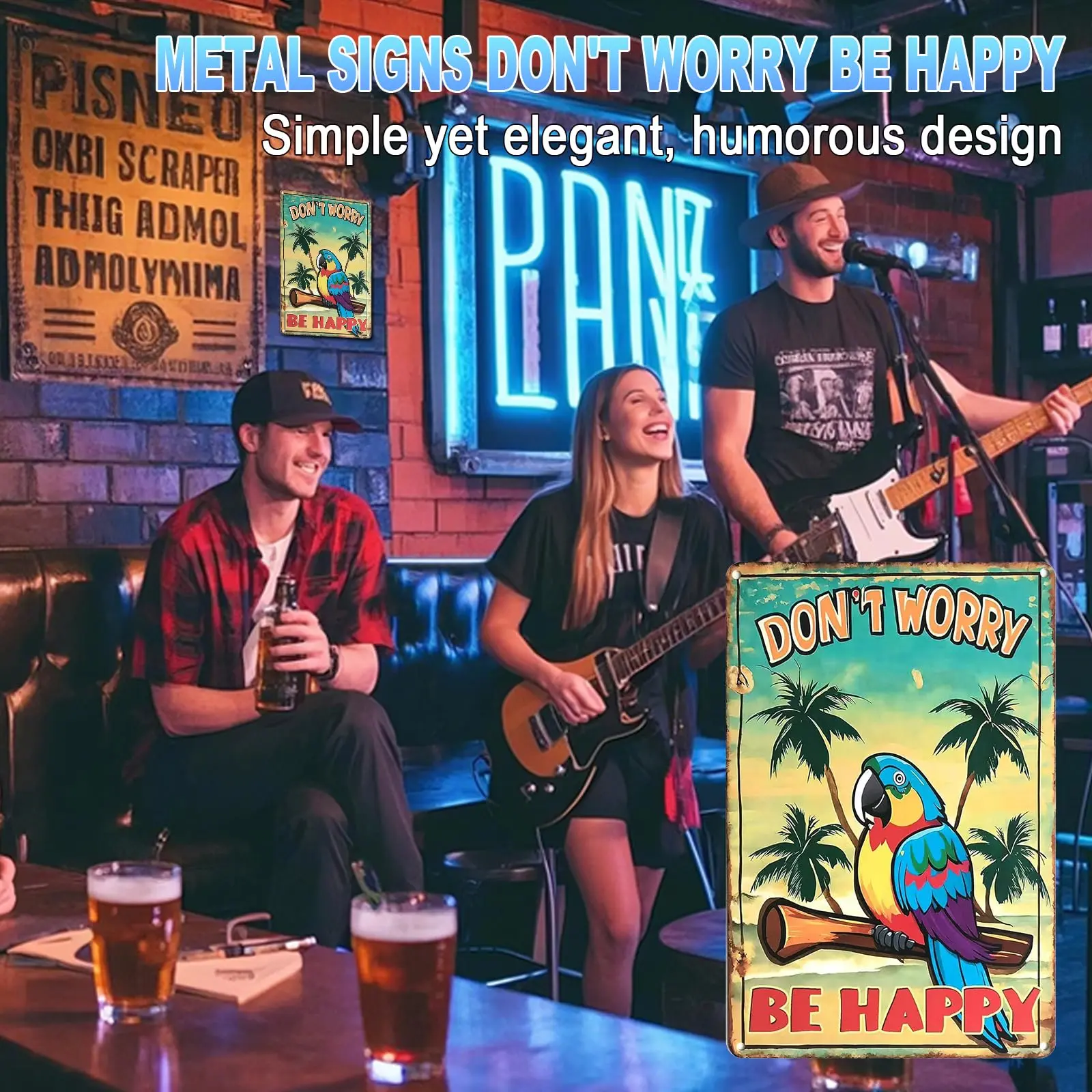 ·Tropical & Retro Designs: Features Metallica, Oasis, and beach-themed tin signs for a fun, laid-back vibe.