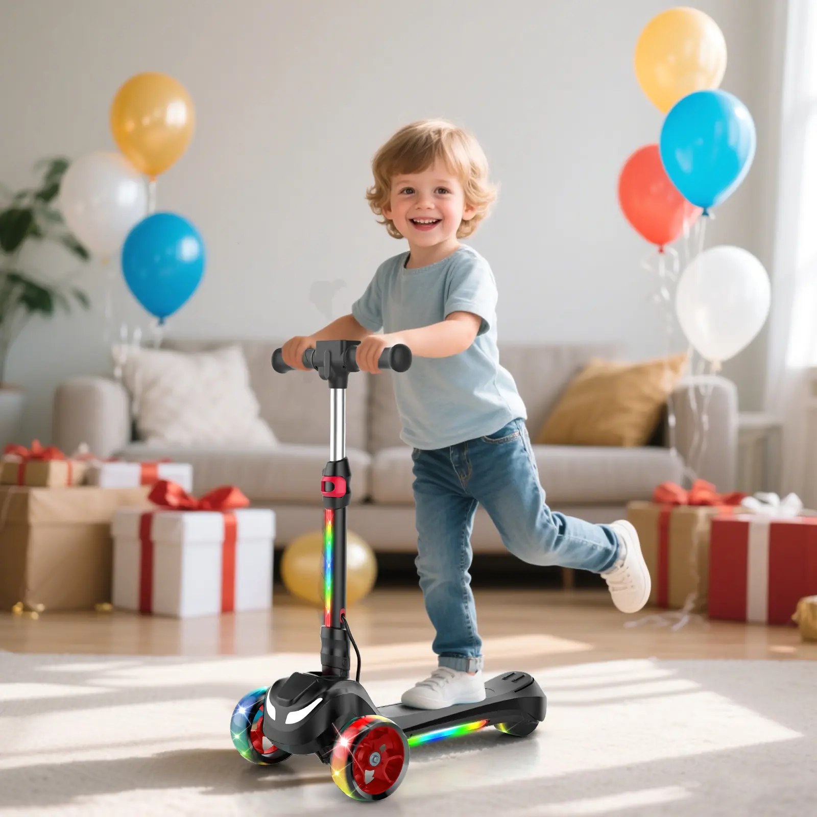 【Kids Love It!】3-Wheel Electric Scooter for Kids Ages 3-8, Electric Kick Scooter with 2 Speed Settings, Long Battery Life, Bluetooth Speaker, Flashing LED Wheels, Lightweight & Stable for Boys Girls