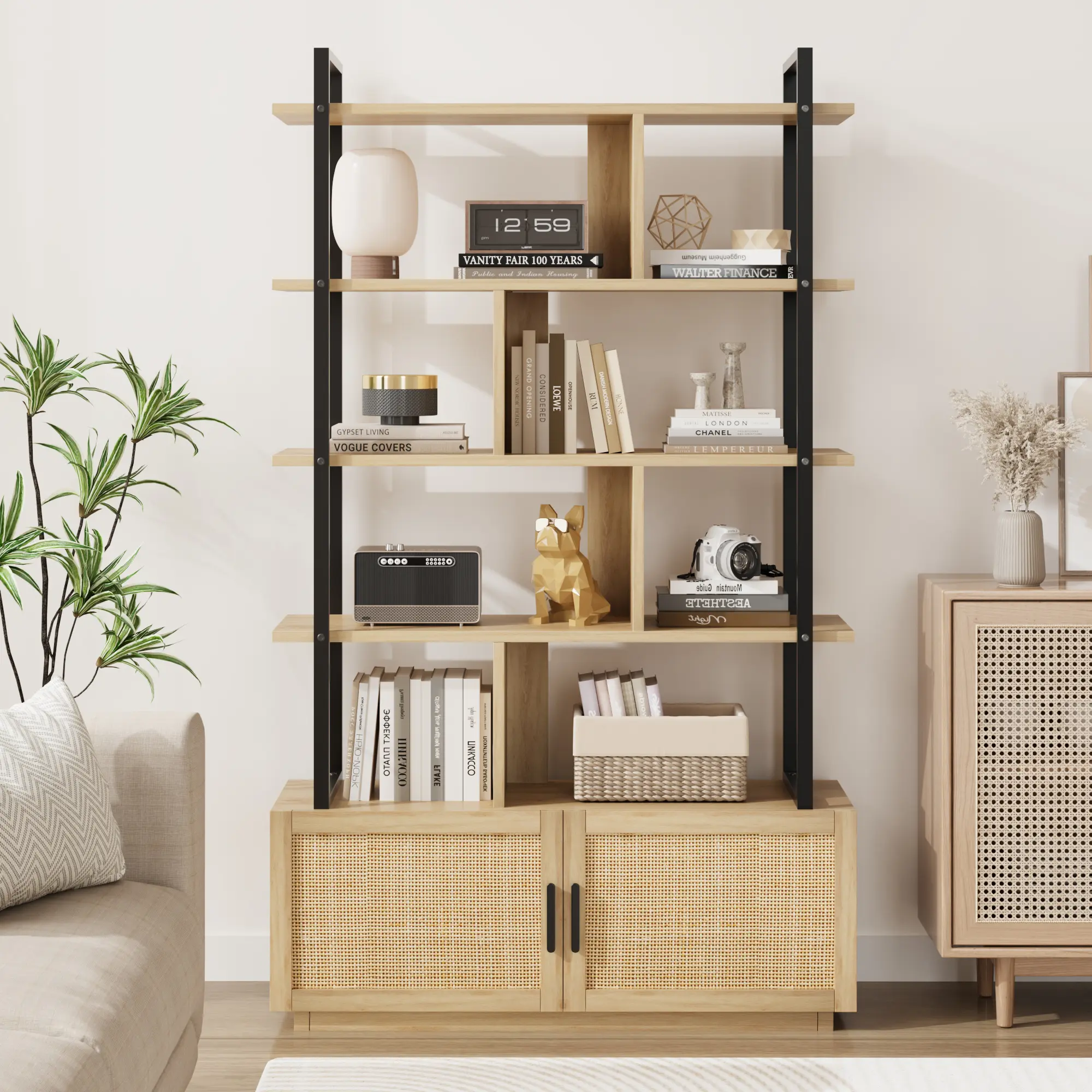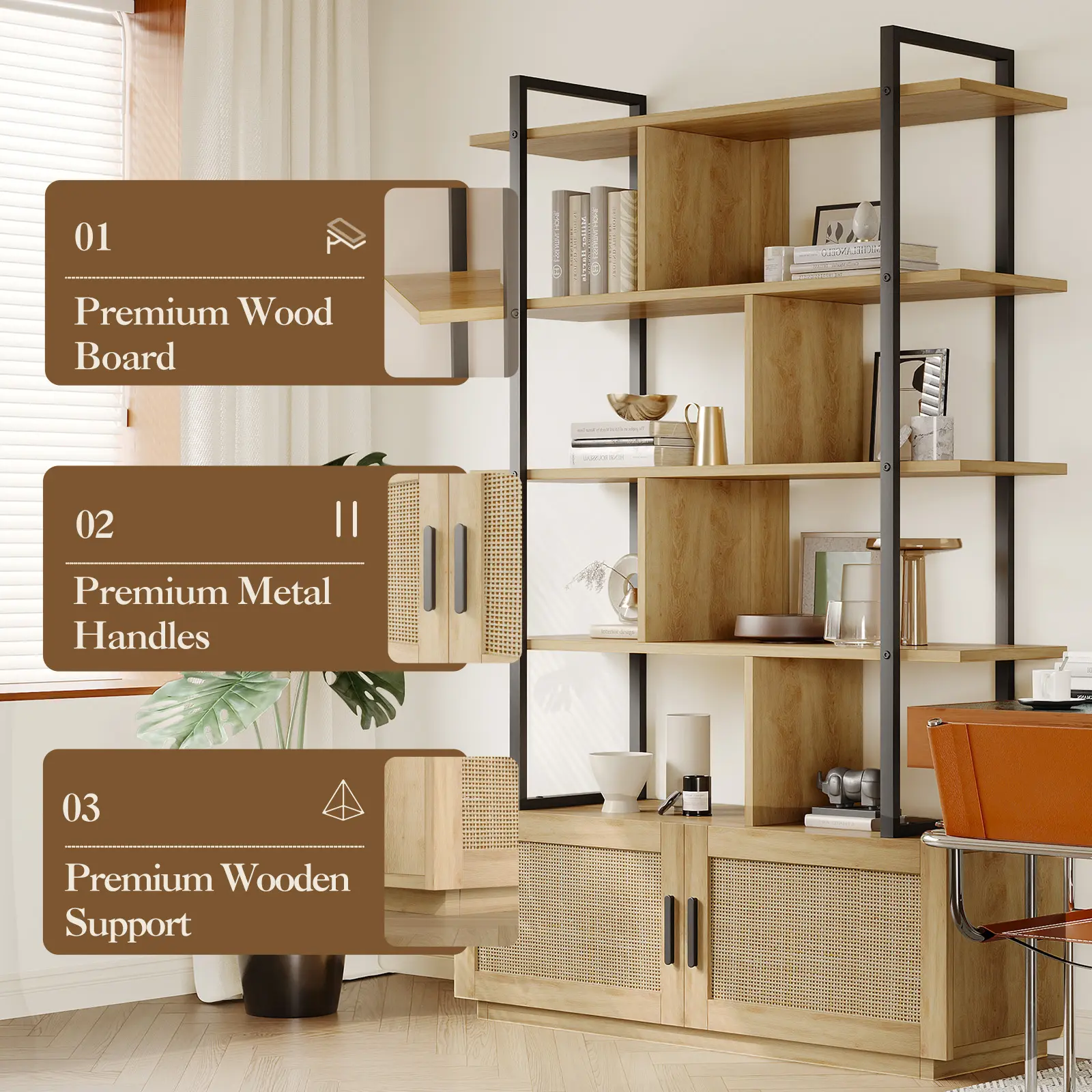 ·Maximized Storage & Display: Featuring five spacious open shelves and a generous storage cabinet with secure rattan doors, this bookcase offers ample space to organize books, files, and office basic. Showcase family photos, collectibles, or potted plants while keeping personal items neat and powder-free.