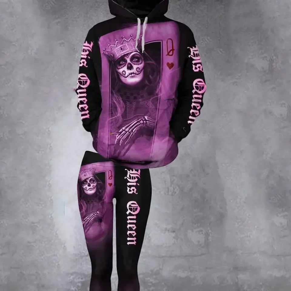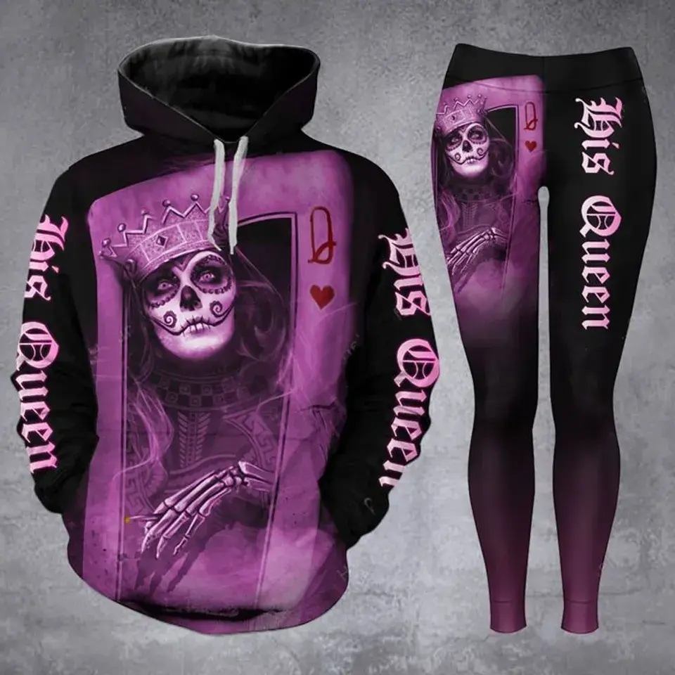 Her King His Queen Hoodie & Leggings Set for Couples – Green and Pink Matching Sweatshirt & High Waist Leggings Outfit, Romantic His and Hers Gift