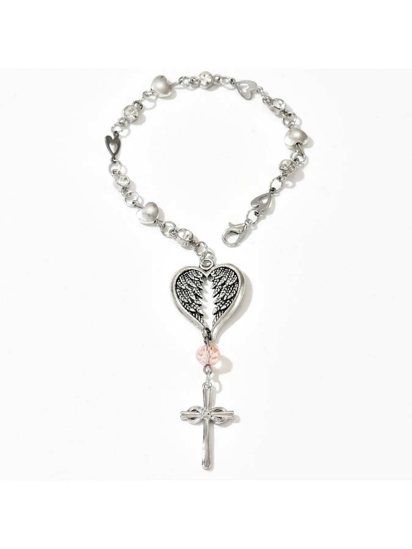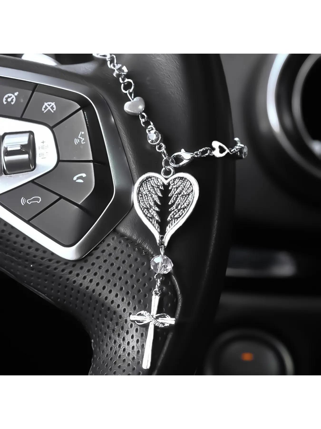 Guardian Angel Heart-shaped Steel-colored Wings Steering Wheel Charm Cross Pendant Accessory