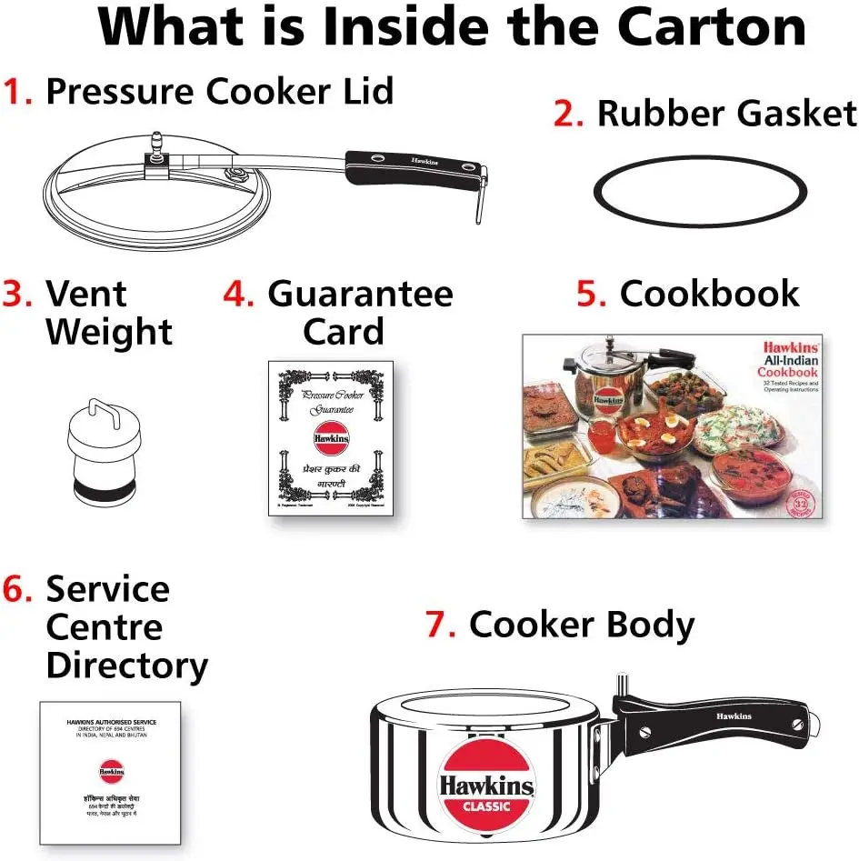 The Hawkins Classic Aluminum 1.5 L Pressure Cooker has been a trusted choice for families for decades. Its innovative pressure control system, introduced in 2005, keeps pressure in a narrower, more efficient range, reduces froth overflow from dal and other foods, and allows smooth operation. The safety valve under the lid handle bar ensures steam is released safely, while the durable gasket lasts longer, making this cooker a reliable, safe, and convenient addition to any kitchen.
