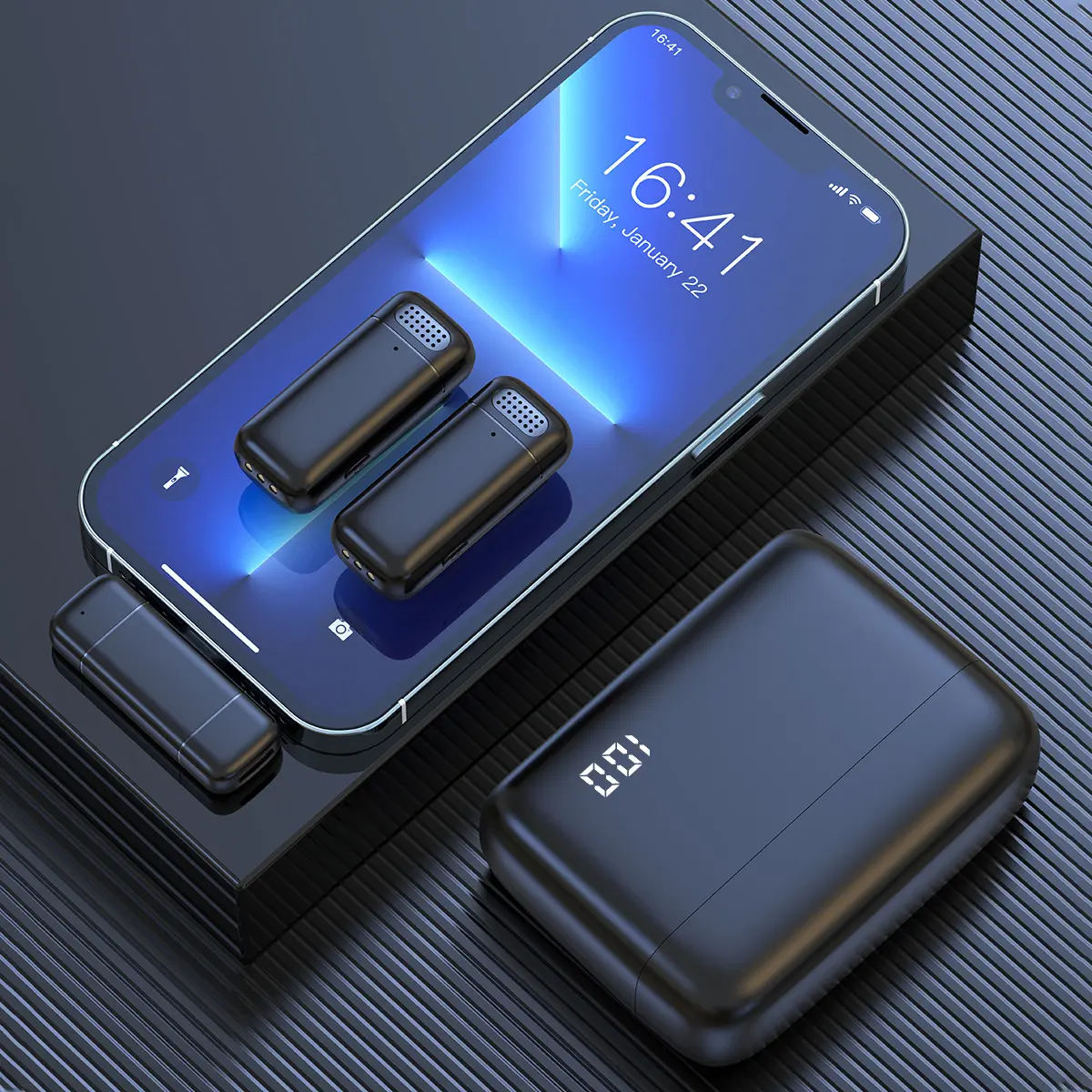 This portable wireless microphone, suitable for iPhone, iPad and Android phones, has noise reduction function and supports wireless audio transmission. It can be used simply by inserting the mini microphone. It is also equipped with a charging case.