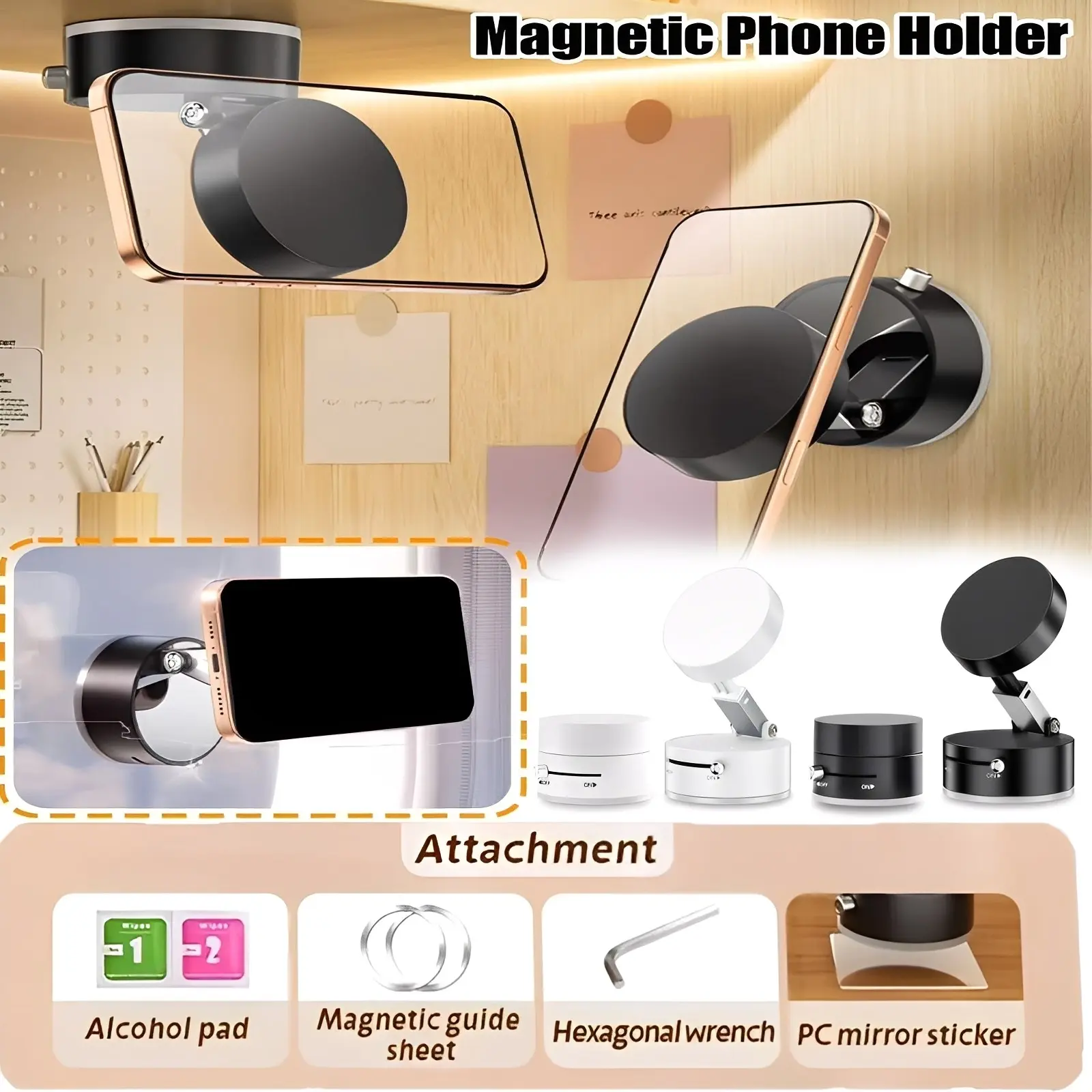 Vacuum Suction Magnetic Phone Holder, Foldable Adjustable Phone Mount with Powerful Magnetic Attraction, Reusable Washable Suction Cup, Compatible with All Smartphones for Desk and Bathroom Use