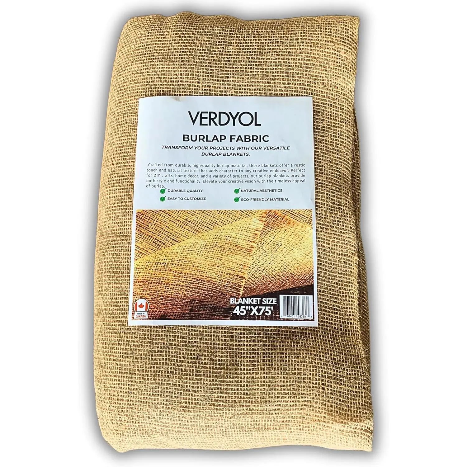 PREMIUM BURLAP FABRIC: for crafting, decorating, and wrapping projects, offering a rustic touch perfect for DIY crafts, home décor, event styling, and gift wrapping.DURABLE BURLAP JUTE FABRIC: ideal for weddings, parties, and rustic settings, combining elegance and functionality for memorable table presentations.Made from 100% biodegradable jute.ECO-FRIENDLY JUTE FABRIC AND BURLAP FABRIC bring sustainable style to home décor, blending perfectly with farmhouse, boho, or rustic interior themes.The open weave design allows air circulation.RUSTIC BURLAP WIRED RIBBON adds a charming touch to gift wrapping, wreaths, and DIY projects, perfect for seasonal crafts or everyday creative designs.Its natural burlap fabric by the yard.BURLAP TREE WRAP BURLAP FOR PLANTS IN WINTER provide frost protection, shielding trees and plants from harsh weather while maintaining a breathable environment for healthy growth.Burlap plant cover.