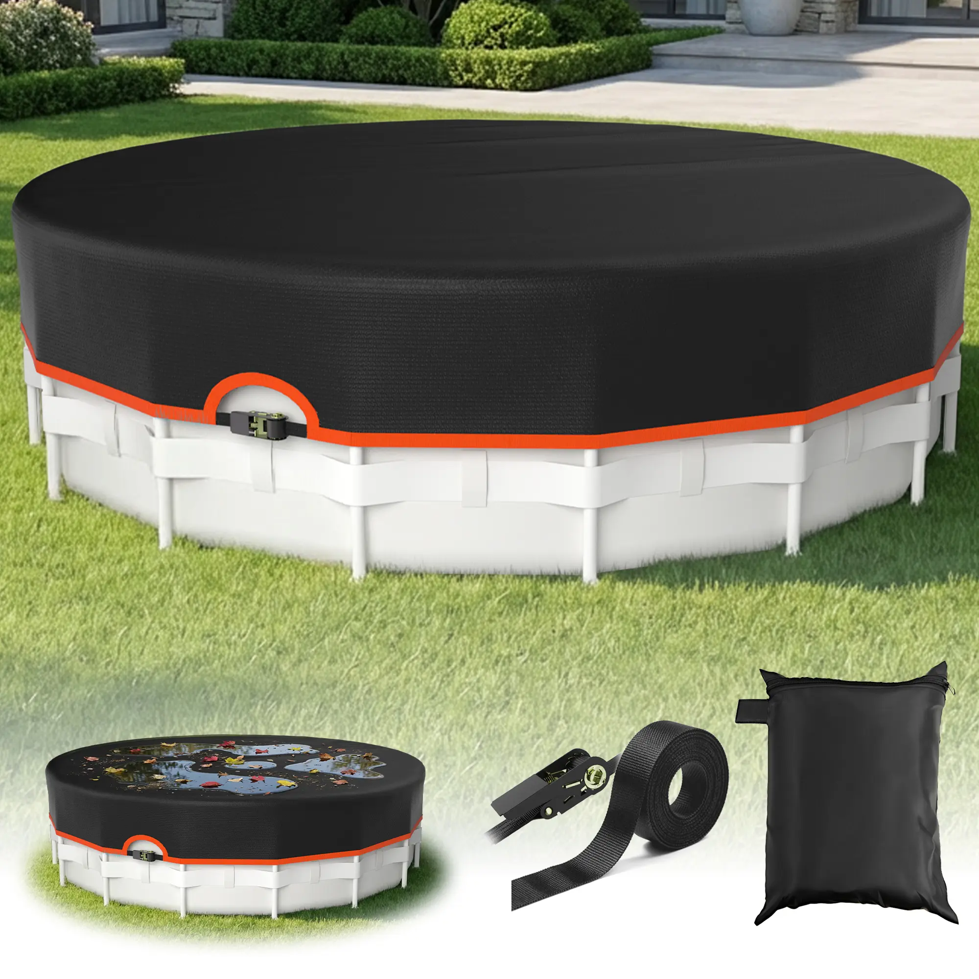 New upgrade 12FT Round Above-Ground Pool Cover Solar Waterproof with Accessories Included for Pool Equipment Shade & Heater Safety way plus org aqua outdoor