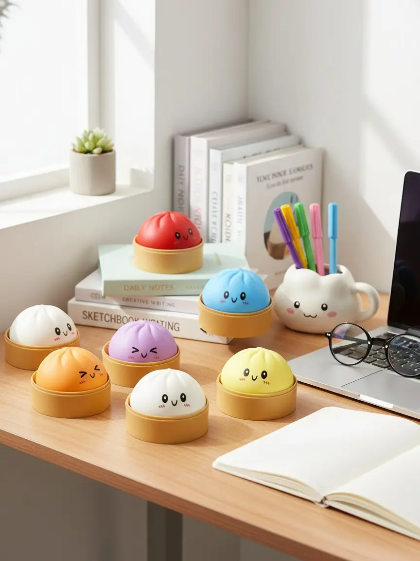 Get ready to squeeze your stress away with our Realistic Bao Bun Squishy Toy! Each bun comes with its own mini steamer basket — perfect for blind box fun. Choose from 7 vibrant colors. Super stretchy and durable for endless squishing. Designed for adults to relieve anxiety and for kids to build focus and sensory skills. Non-toxic and odor-free so you can play worry-free. Great for desk decor party favors or classroom rewards. Pull it stretch it squish it — you won‘t want to put it down.