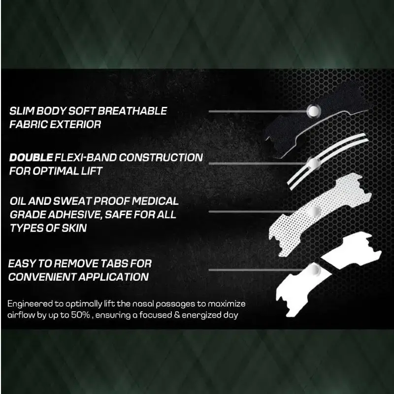 【Breathable material】: Crafted from breathable fabric, these nasal strips ensure airflow while exercising or sleeping for enhanced respiratory comfort.