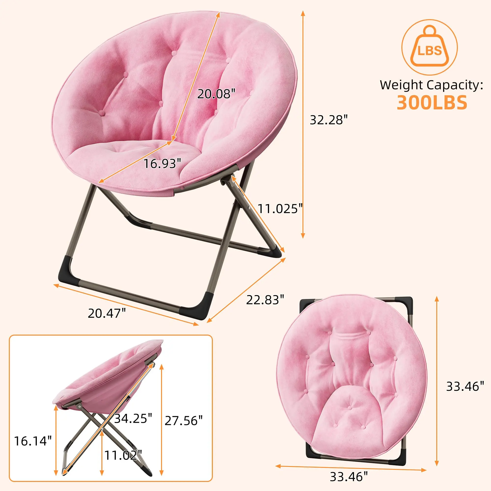 Comfy Folding Padded Saucer Chair – Folding Circle Chair with Metal Frame, Soft Moon Chair for Bedroom, Dorm, Apartment, Lounging, Garden & Courtyard