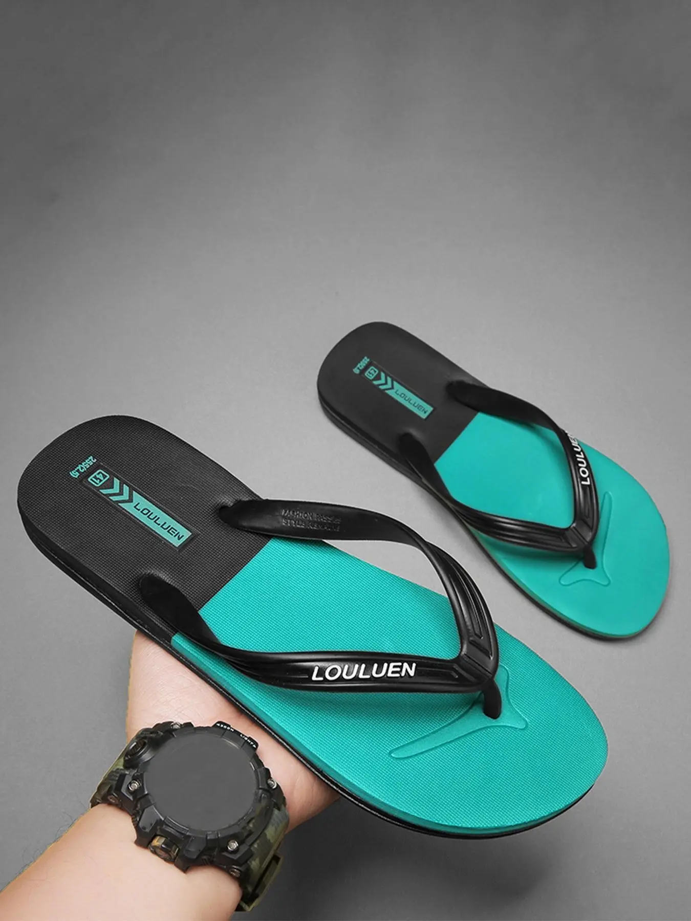 Men's Flip-Flops with Letter Print, Casual PVC Sandals, Comfortable Beach Shoes, Lightweight Slippers for Home, Bathroom, and Beach