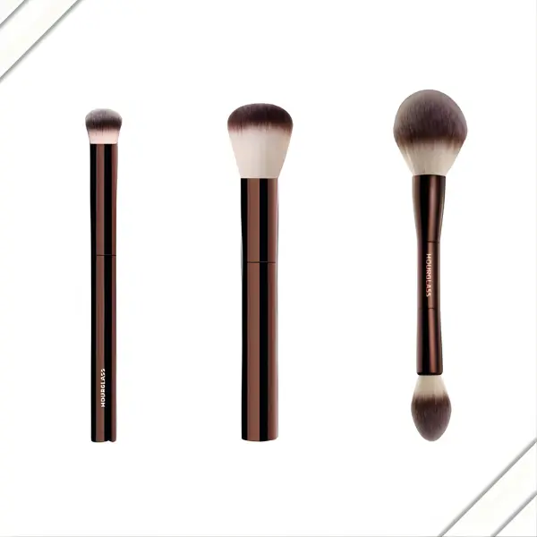 Super soft double ended brush that blends creams, liquids, and powders beautifully. I will definitely purchase more brushes from Hourglass. Worth the money. Plus you are getting two brushes in one. Perfect for traveling. I usually buy drugstore brushes but I clearly see the value. Highly recommend!
