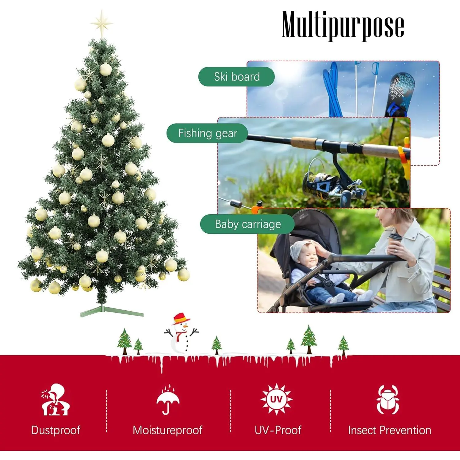 AGS Cosy Family 7.5 ft Christmas Tree Storage Bag - Durable Heavy Duty Extra Large Artificial Xmas Holiday Tree Bag with Reinforced Handles and Dual Zippers Wide Opening - Red