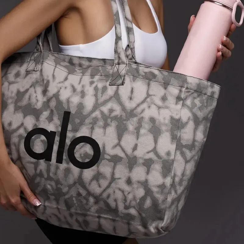 Design Concept: Inspired by studio-to-street versatility, the bag features bold contrast-print graphics that echo Alo’s signature fusion of calm and energy. Its clean, minimalist silhouette honors functional elegance—ideal for carrying yoga mats, laptops, or daily essentials.