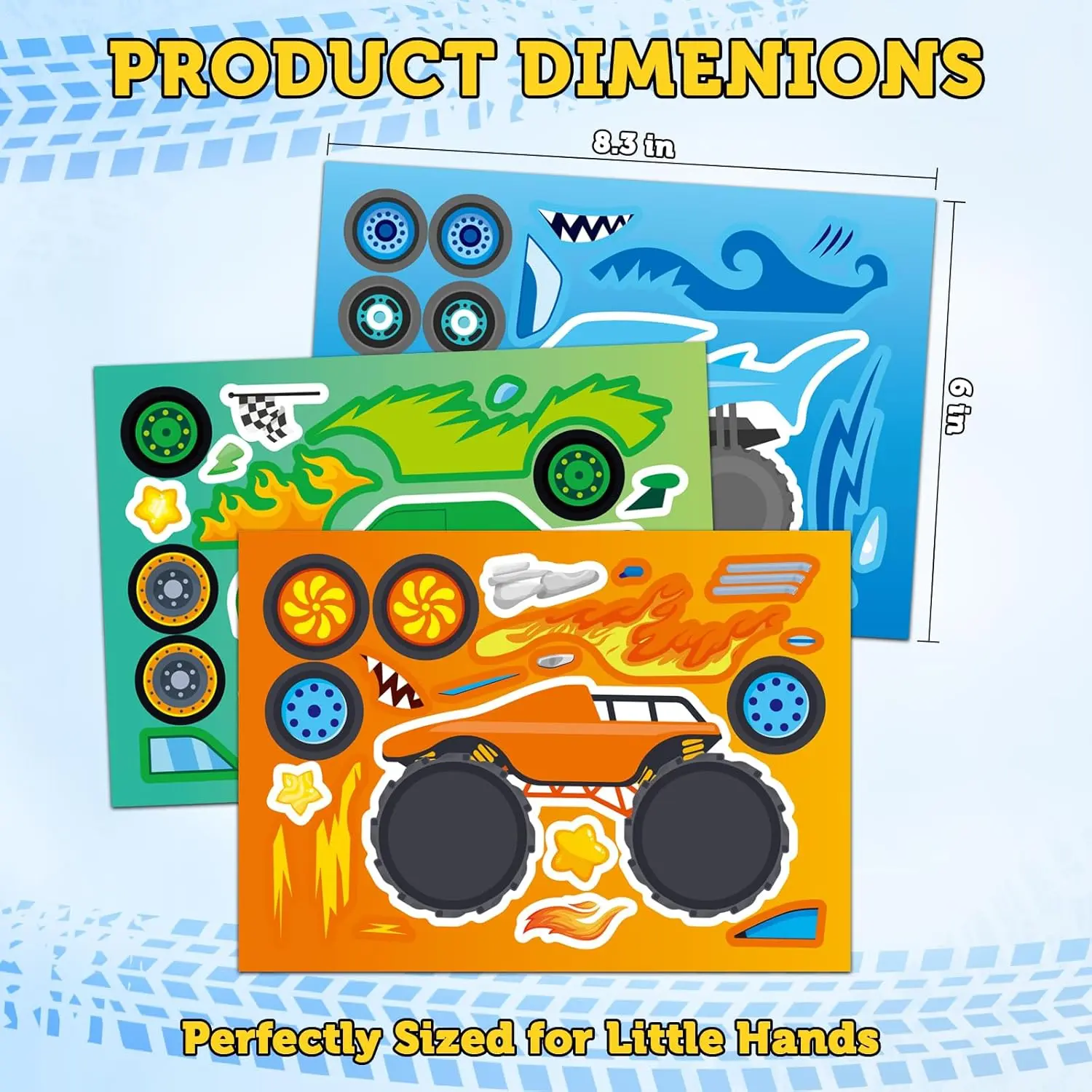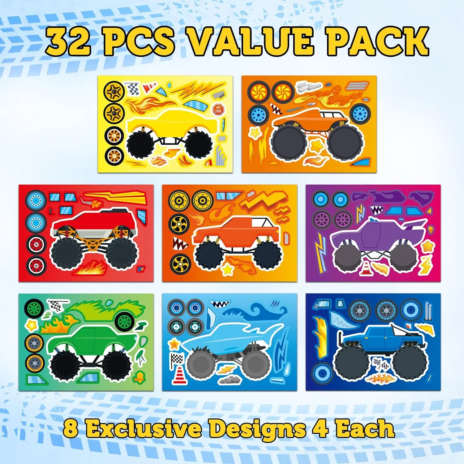 ·🛻💥 Unleash Creativity and Fun: Let your child's imagination run wild with 32 vibrant monster truck stickers, featuring 8 unique designs (8.3 in x 6.0 in).