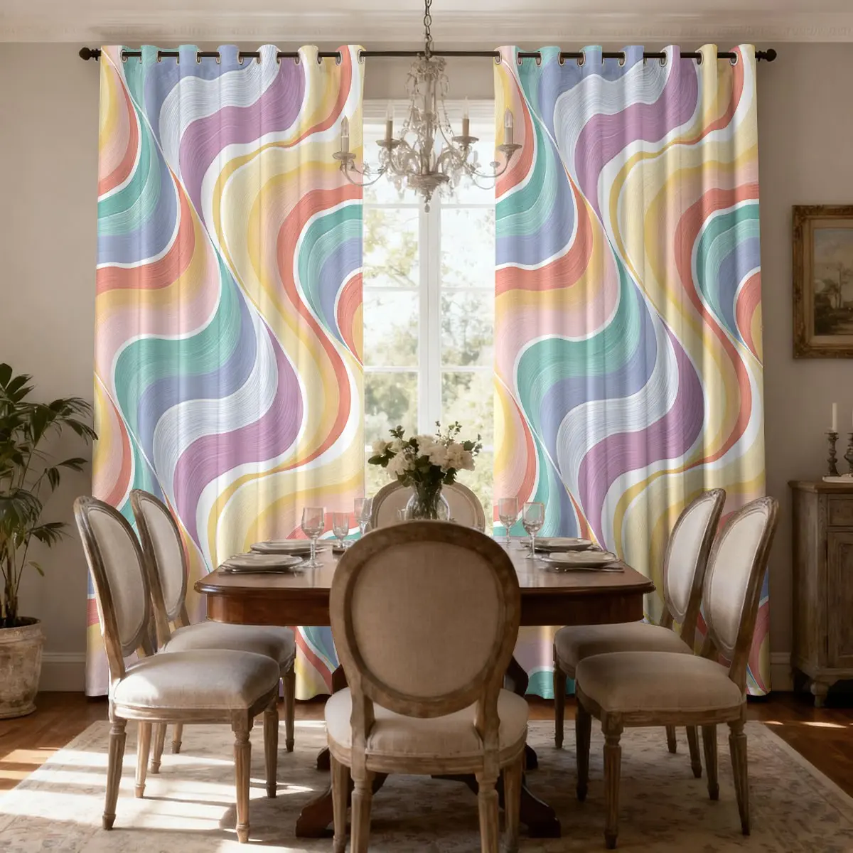 5. Blackout Curtains 2 panels, Room Darkening Wave Colorful Stripe Thermal Insulated Window Curtains for Living Room Curtain,Machine‑Washable Window Curtains with Grommet