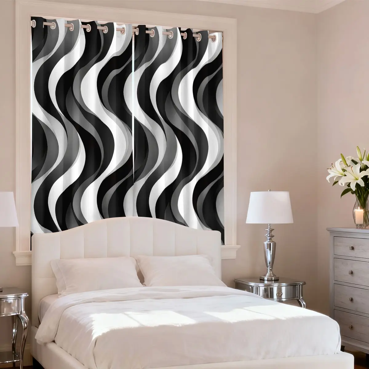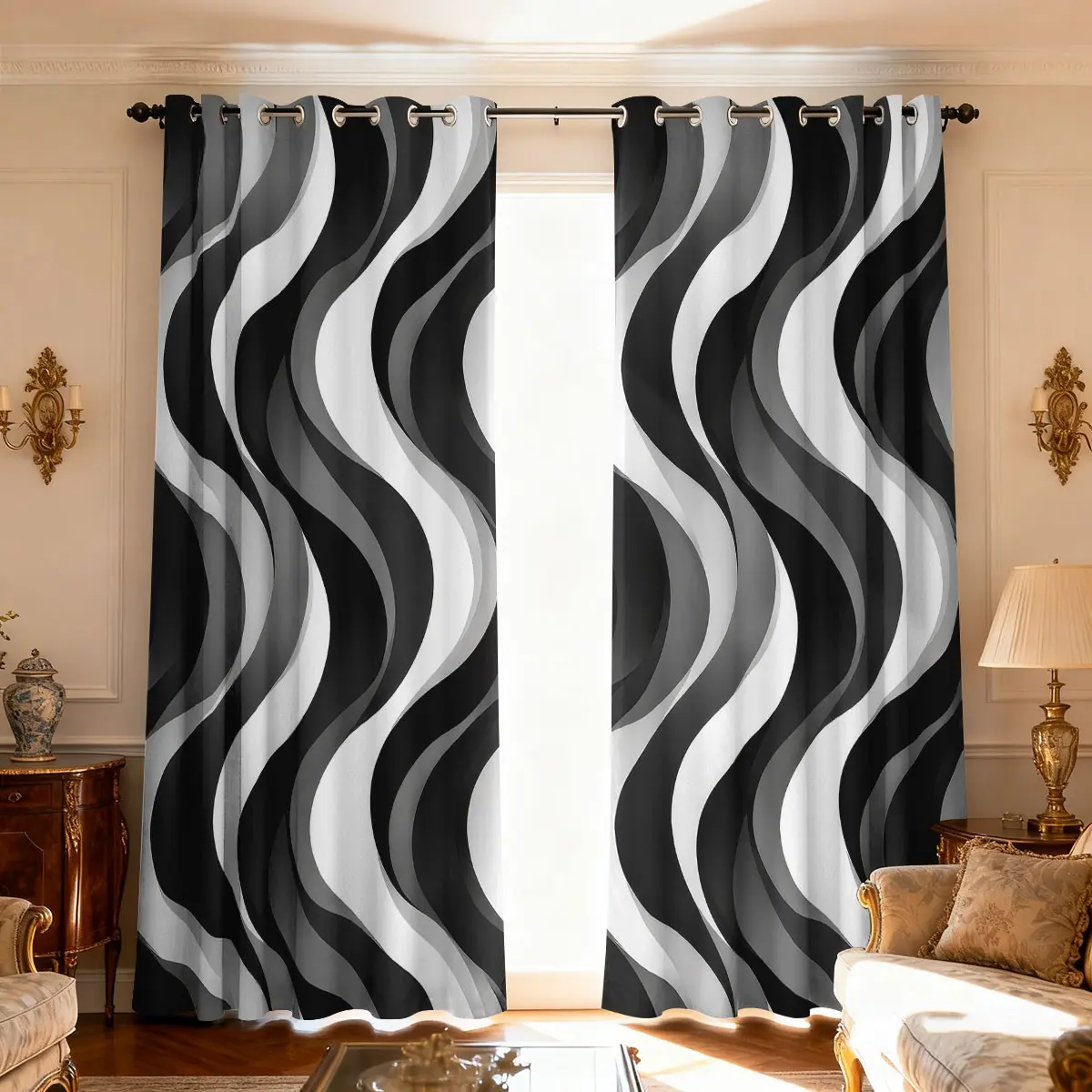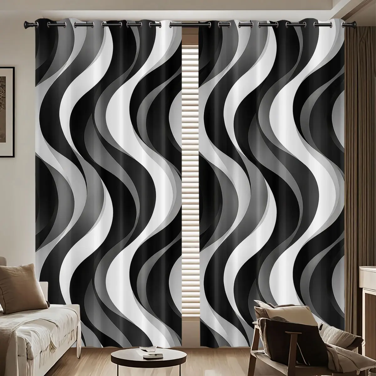【Wave Pattern】: Featuring a unique wave gray and white stripe pattern, these curtains add a modern touch to any room.