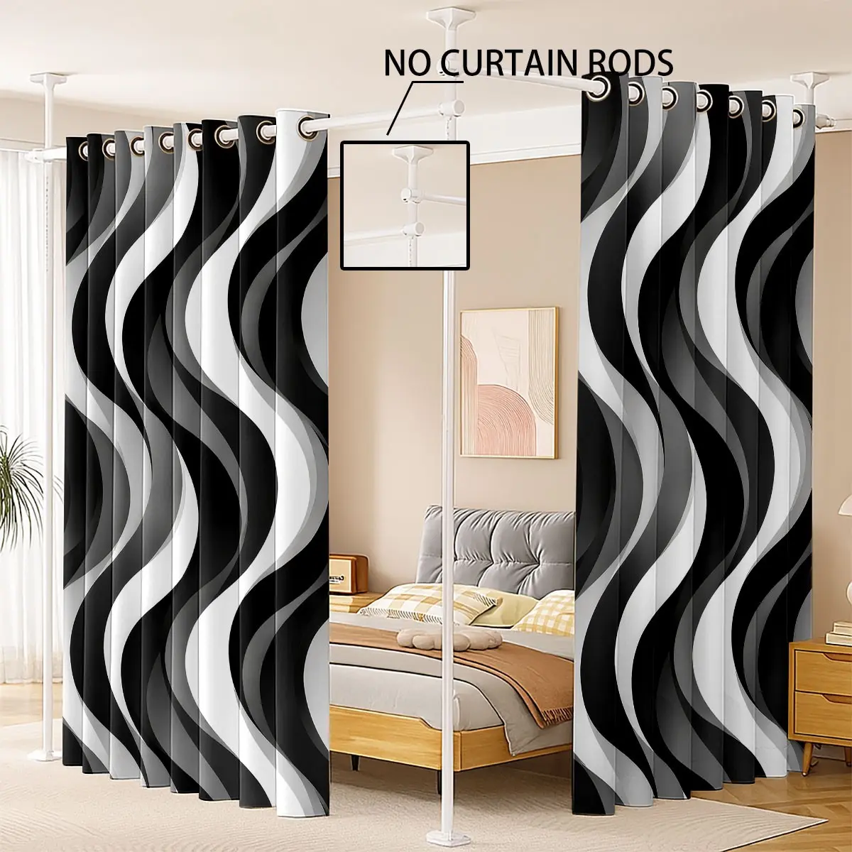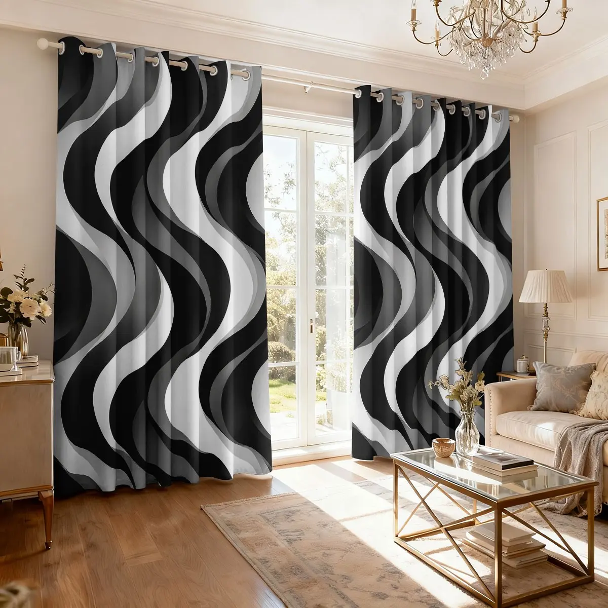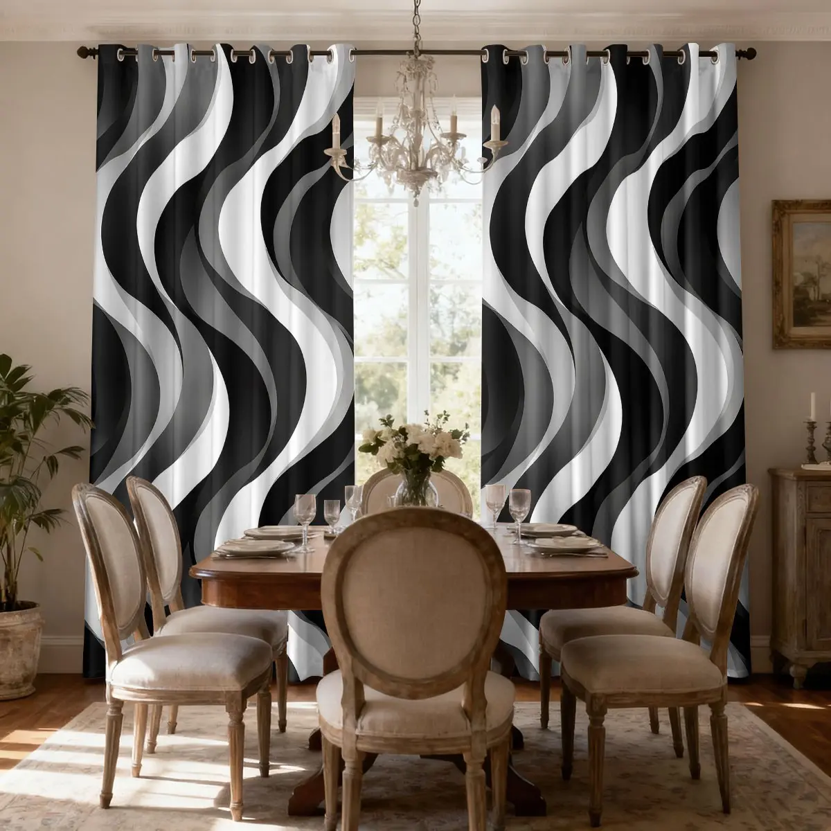 【Wave Pattern】: Featuring a unique wave gray and white stripe pattern, these curtains add a modern touch to any room.