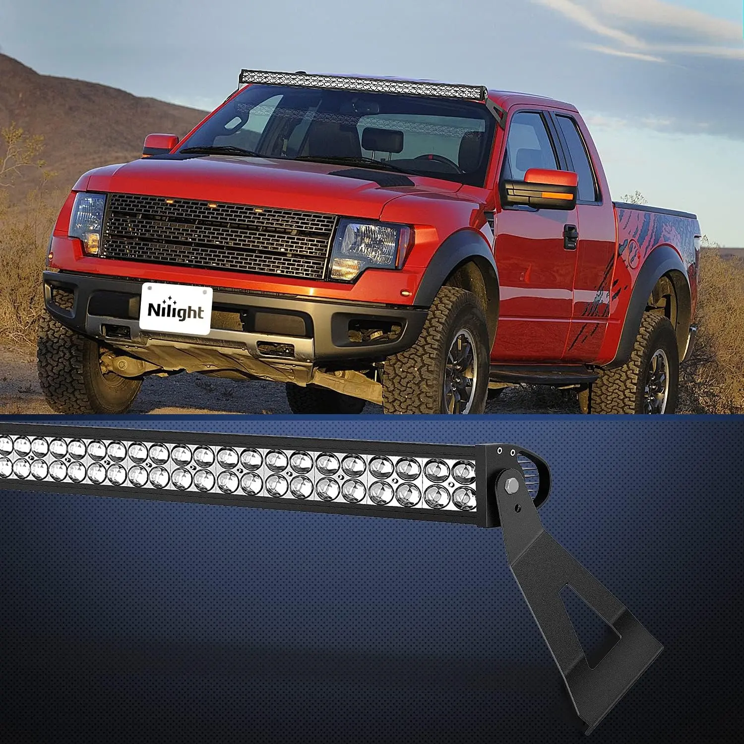 ·Fitment: Only compatible with 52 inch curved light bar mounts at the roof cab/upper windshield of 2004-2018 Ford F150 & SVT Raptor