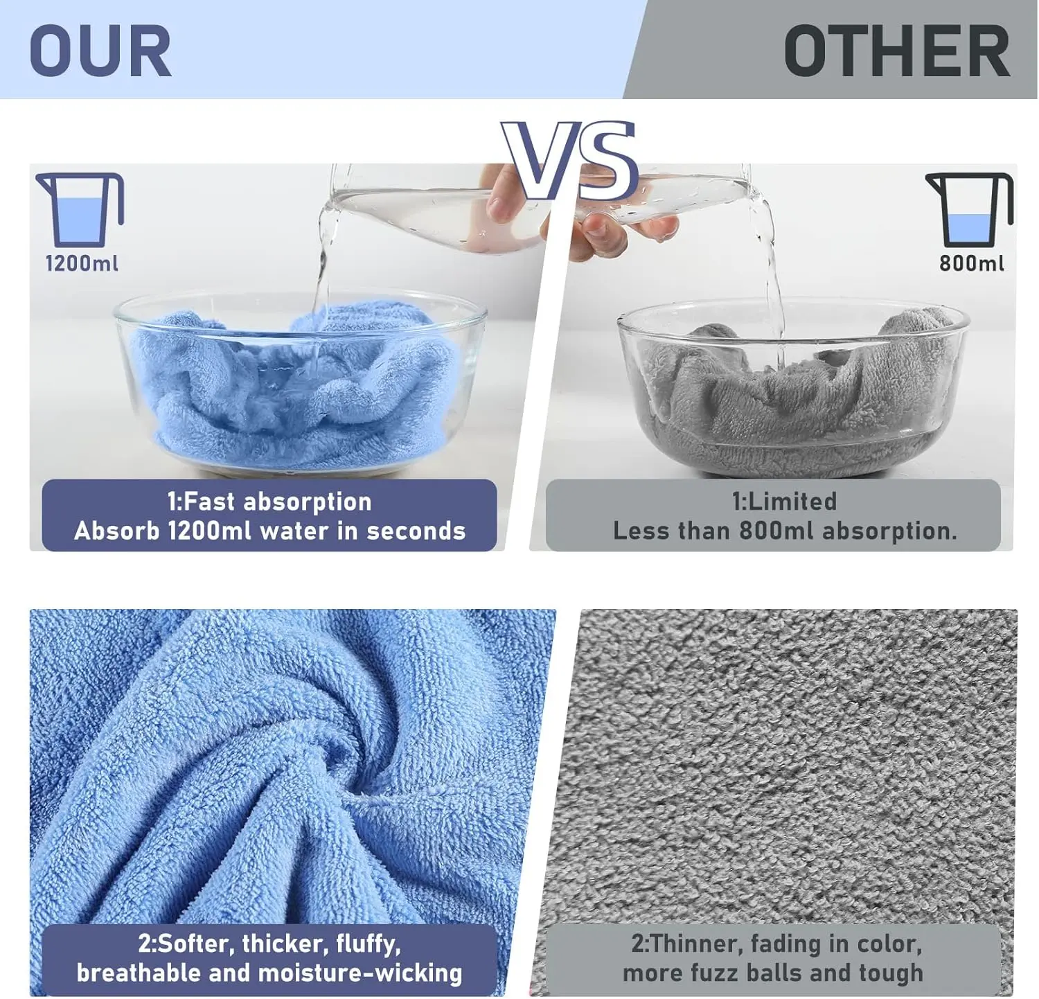 ·Super Absorbent and Quick Drying: Hair towel wrap is made from highly absorbent microfiber, ensuring efficient water absorption and rapid drying. It's breathable and odorless, providing a comfortable experience.