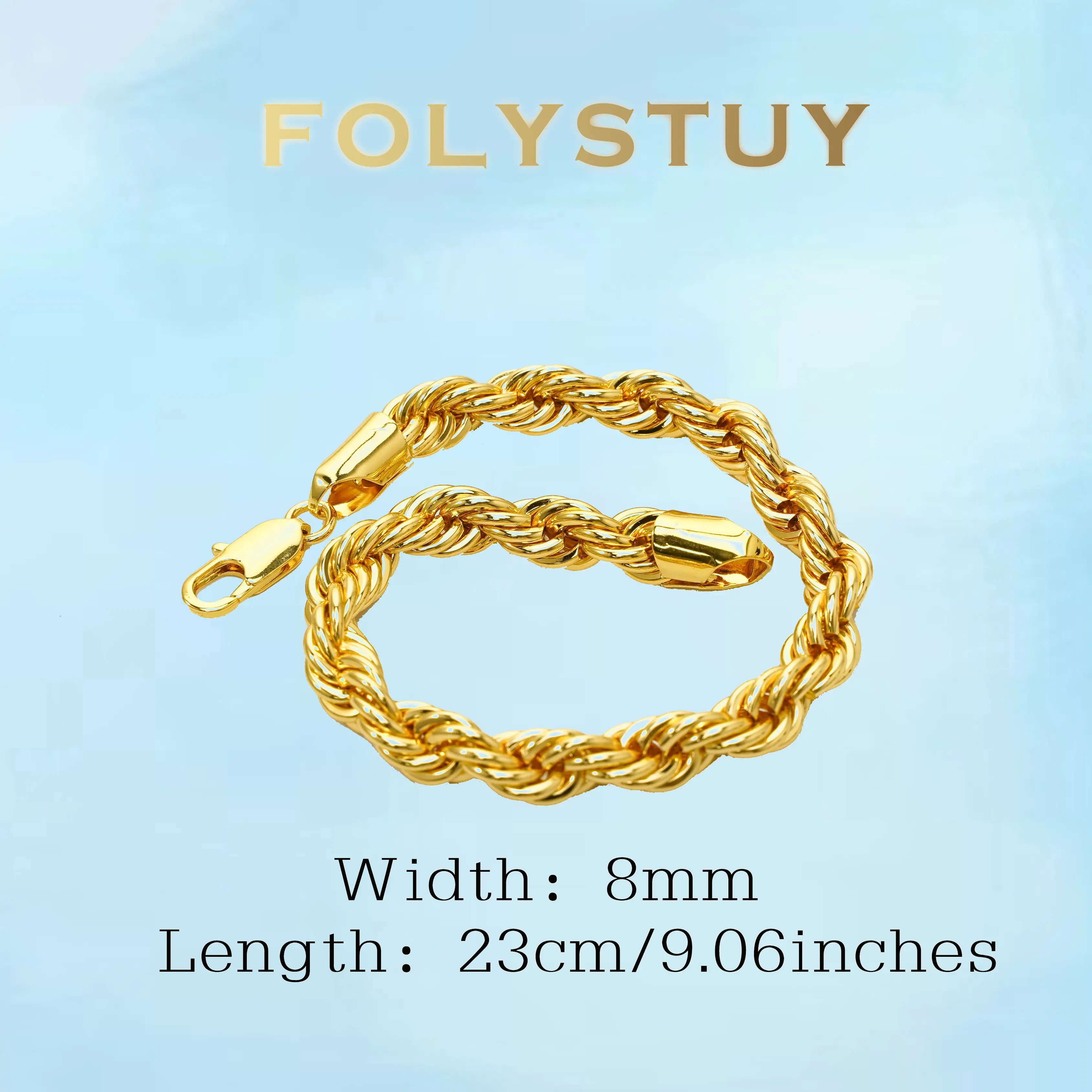 [FOLYSTUY (W164)]Mens Twisted Rope Chain Bracelet, 0.31" Width 9.06" Length, Sturdy Statement Wrist Bangle for Daily Wear & Street Style